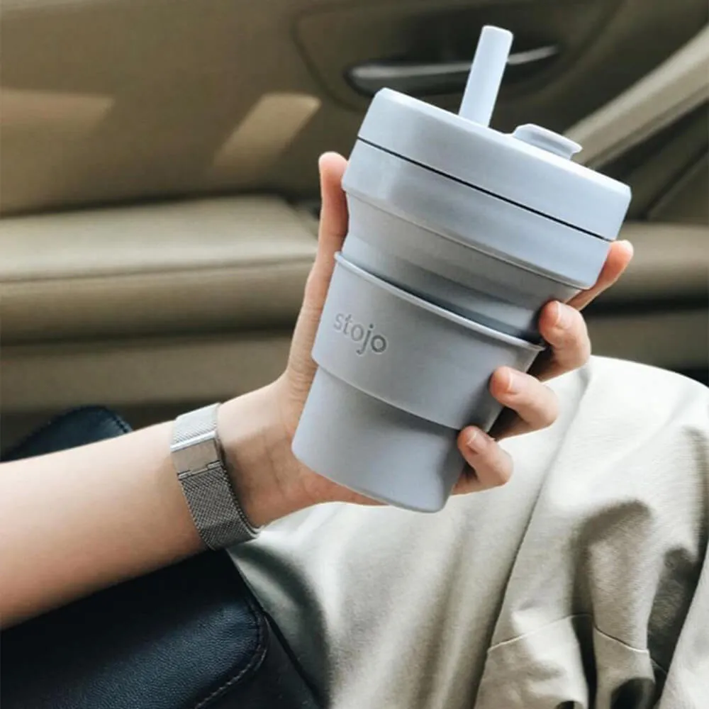 Многоразовый складной стакан Stojo, который очень удобно взять с собой куда угодно, чтобы быть готовым к неожиданной покупке чая или кофе с собой.