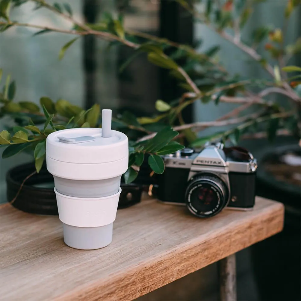 Многоразовый складной стакан Stojo, который очень удобно взять с собой куда угодно, чтобы быть готовым к неожиданной покупке чая или кофе с собой.