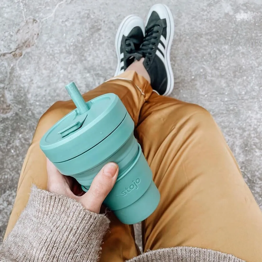 Многоразовый складной стакан Stojo, который очень удобно взять с собой куда угодно, чтобы быть готовым к неожиданной покупке чая или кофе с собой.