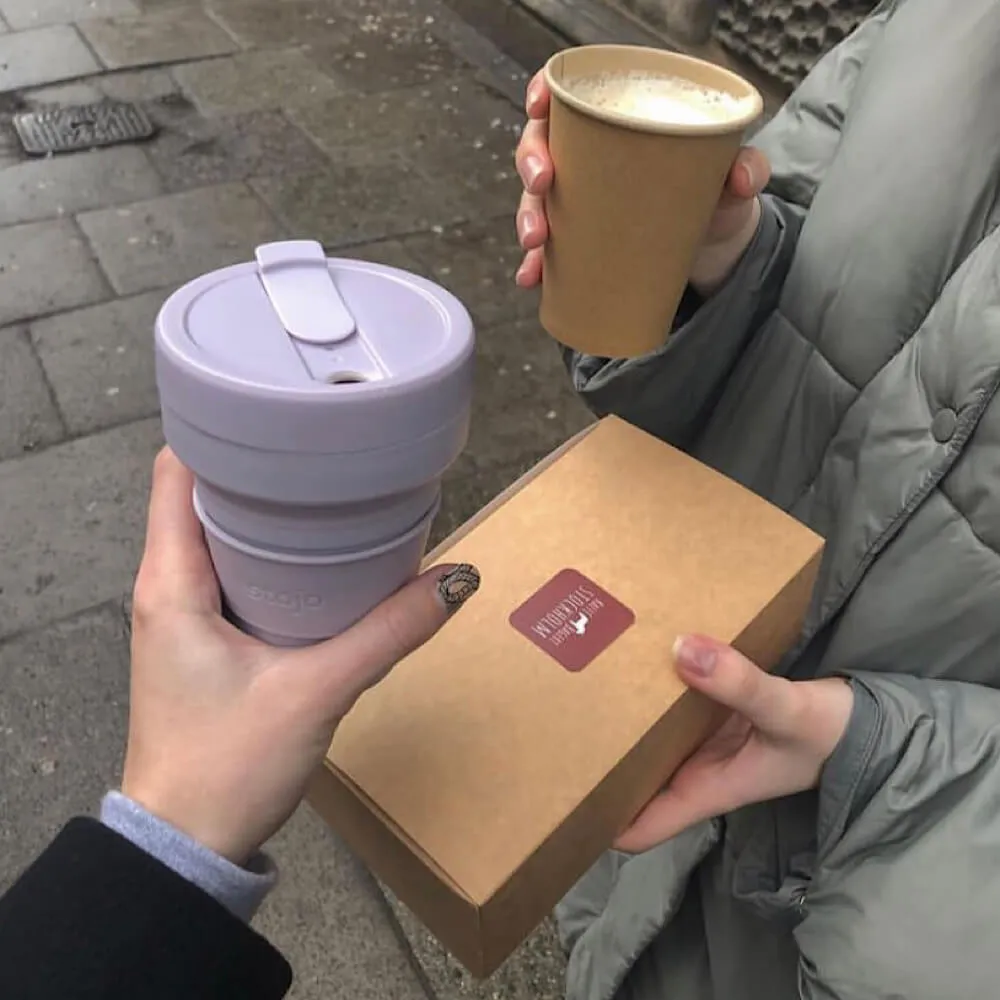 Многоразовый складной стакан Stojo, который очень удобно взять с собой куда угодно, чтобы быть готовым к неожиданной покупке чая или кофе с собой.