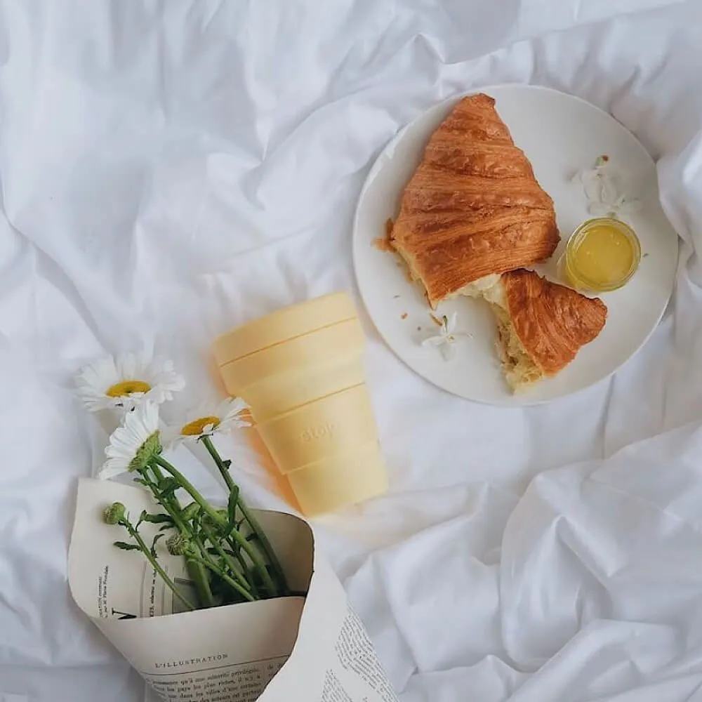 Многоразовый складной стакан Stojo, который очень удобно взять с собой куда угодно, чтобы быть готовым к неожиданной покупке чая или кофе с собой.