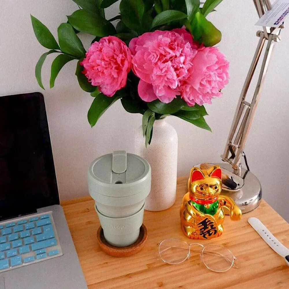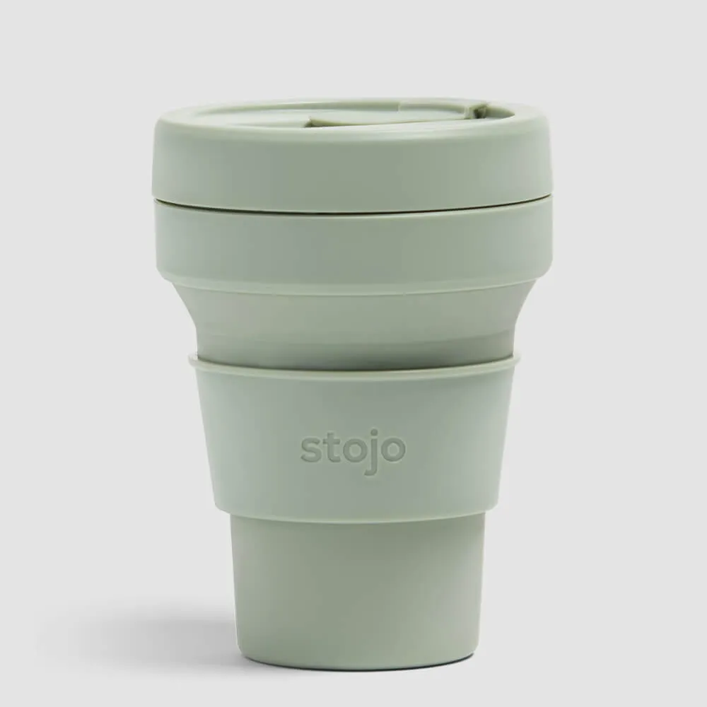 Многоразовый складной стакан Stojo, который очень удобно взять с собой куда угодно, чтобы быть готовым к неожиданной покупке чая или кофе с собой.