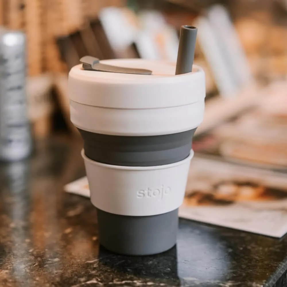Многоразовый складной стакан Stojo, который очень удобно взять с собой куда угодно, чтобы быть готовым к неожиданной покупке чая или кофе с собой.