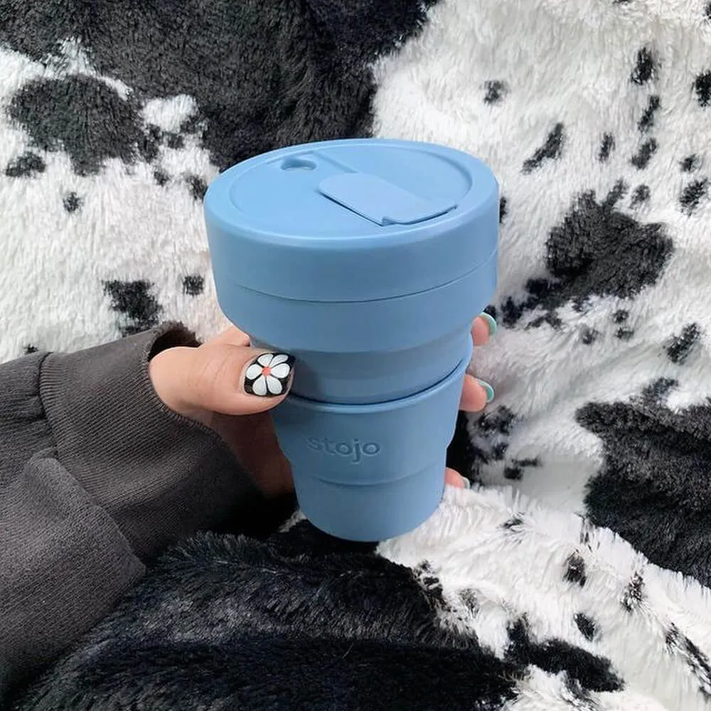 Многоразовый складной стакан Stojo, который очень удобно взять с собой куда угодно, чтобы быть готовым к неожиданной покупке чая или кофе с собой.