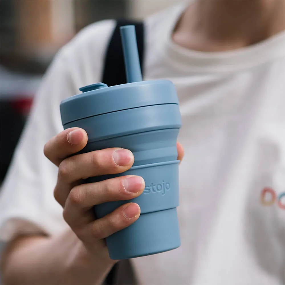 Многоразовый складной стакан Stojo, который очень удобно взять с собой куда угодно, чтобы быть готовым к неожиданной покупке чая или кофе с собой.