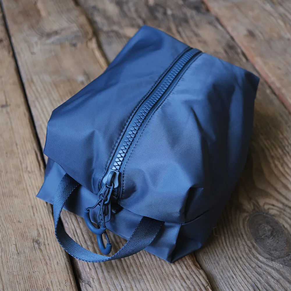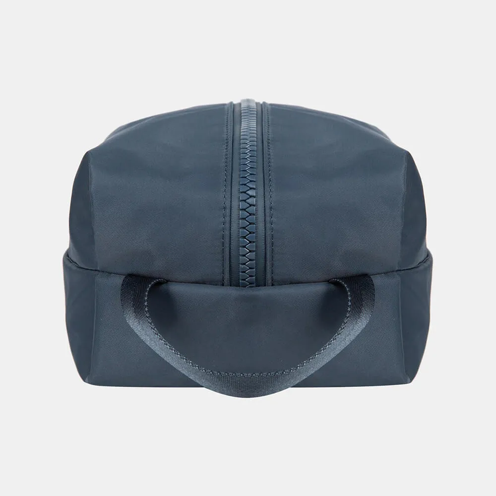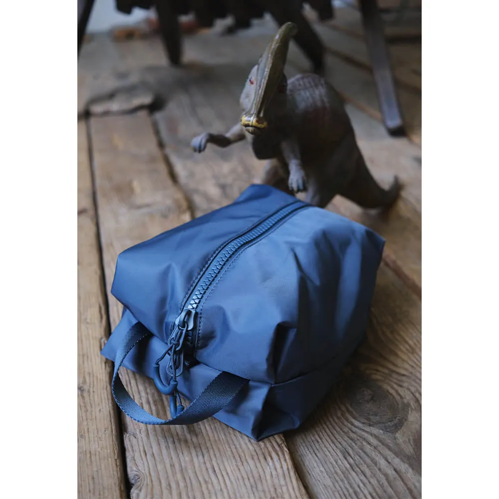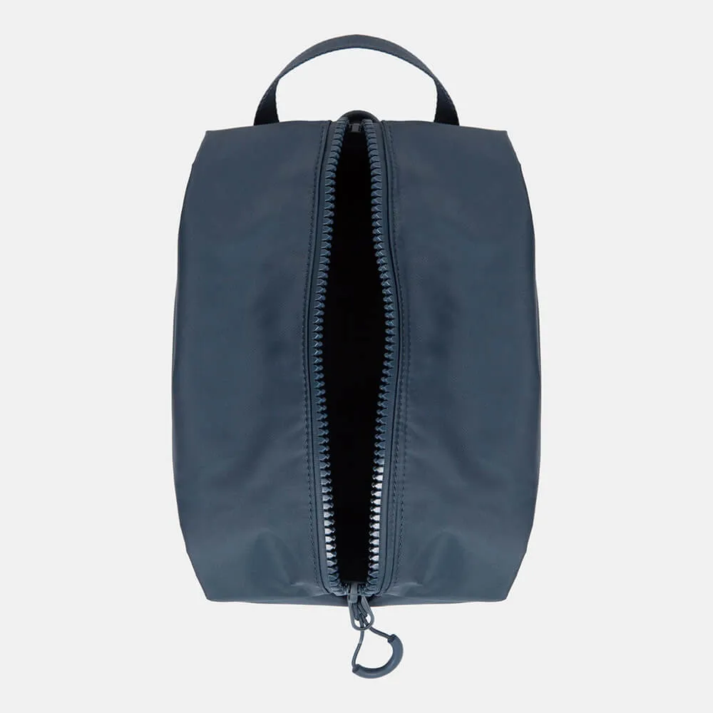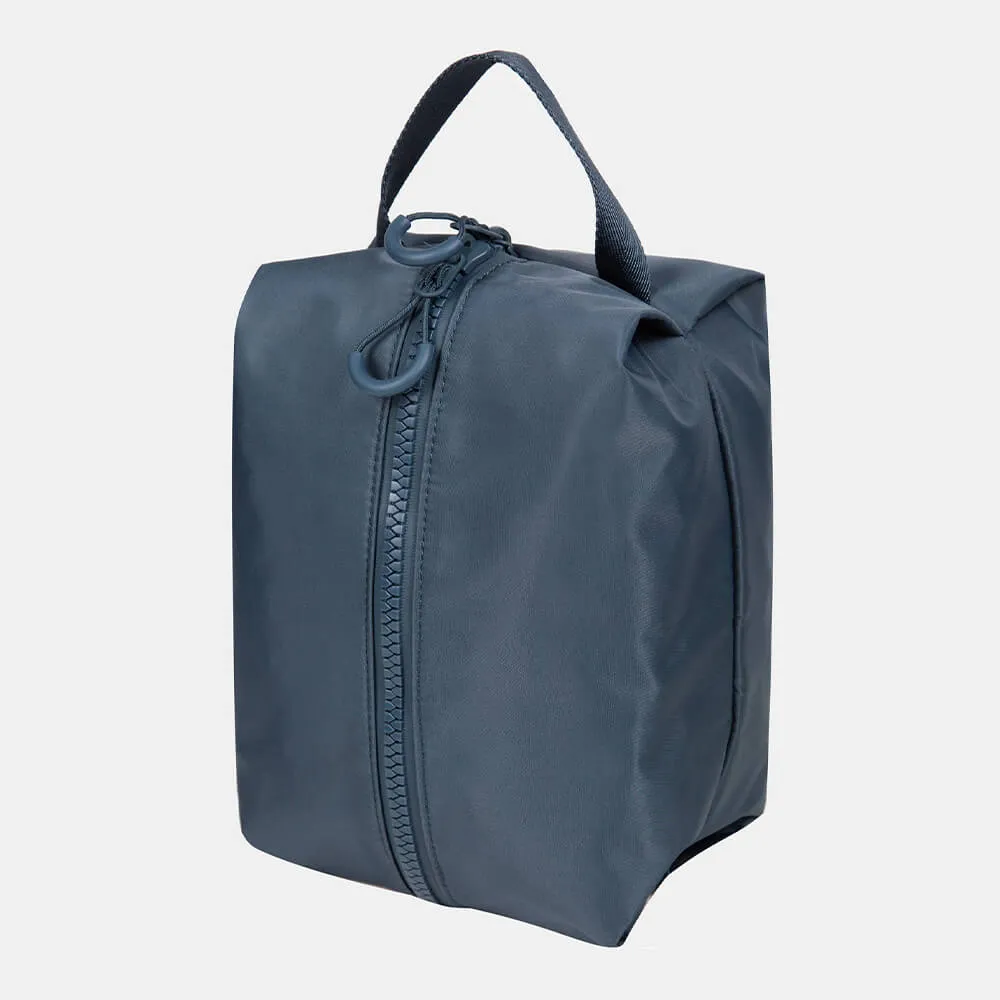 Непромокаемый синий несессер можно использовать как косметичку или дорожную сумку, куда помещаются необходимые в путешествиях мелочи.