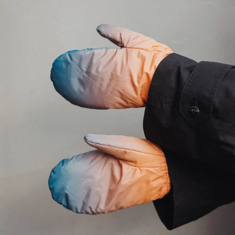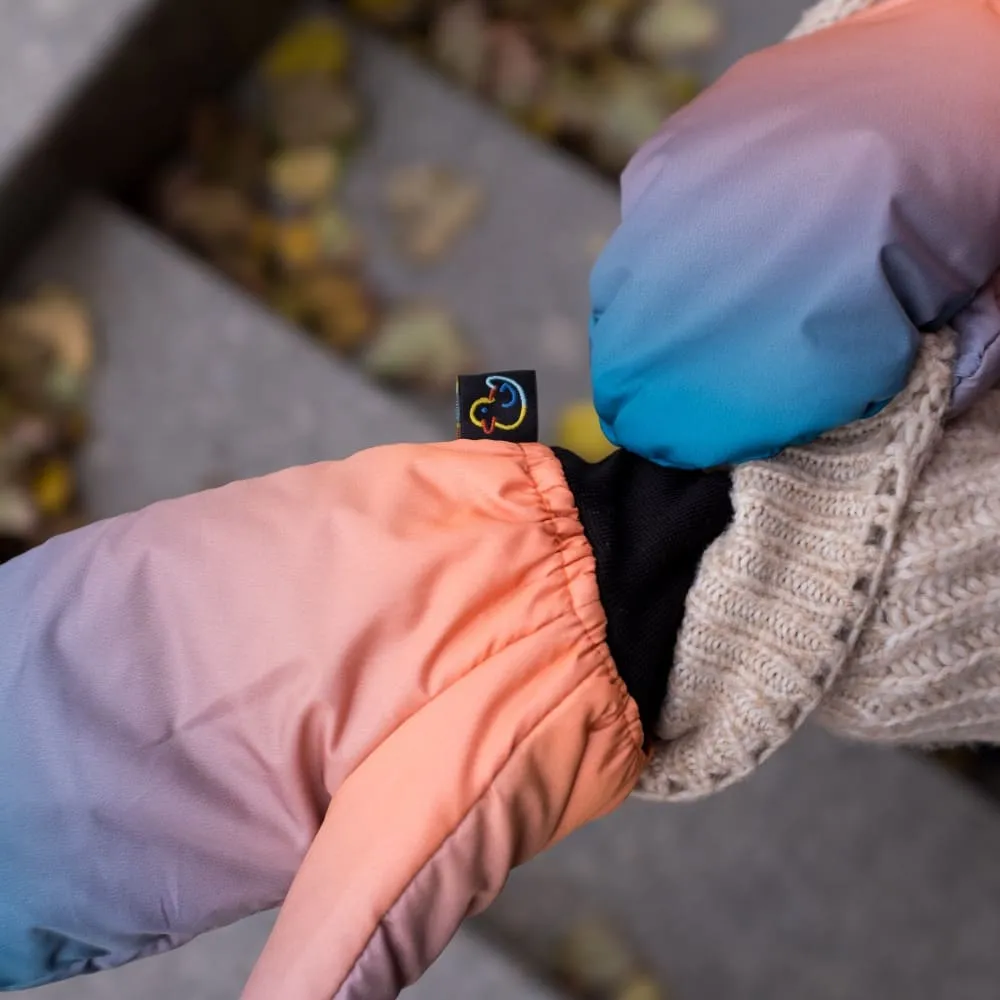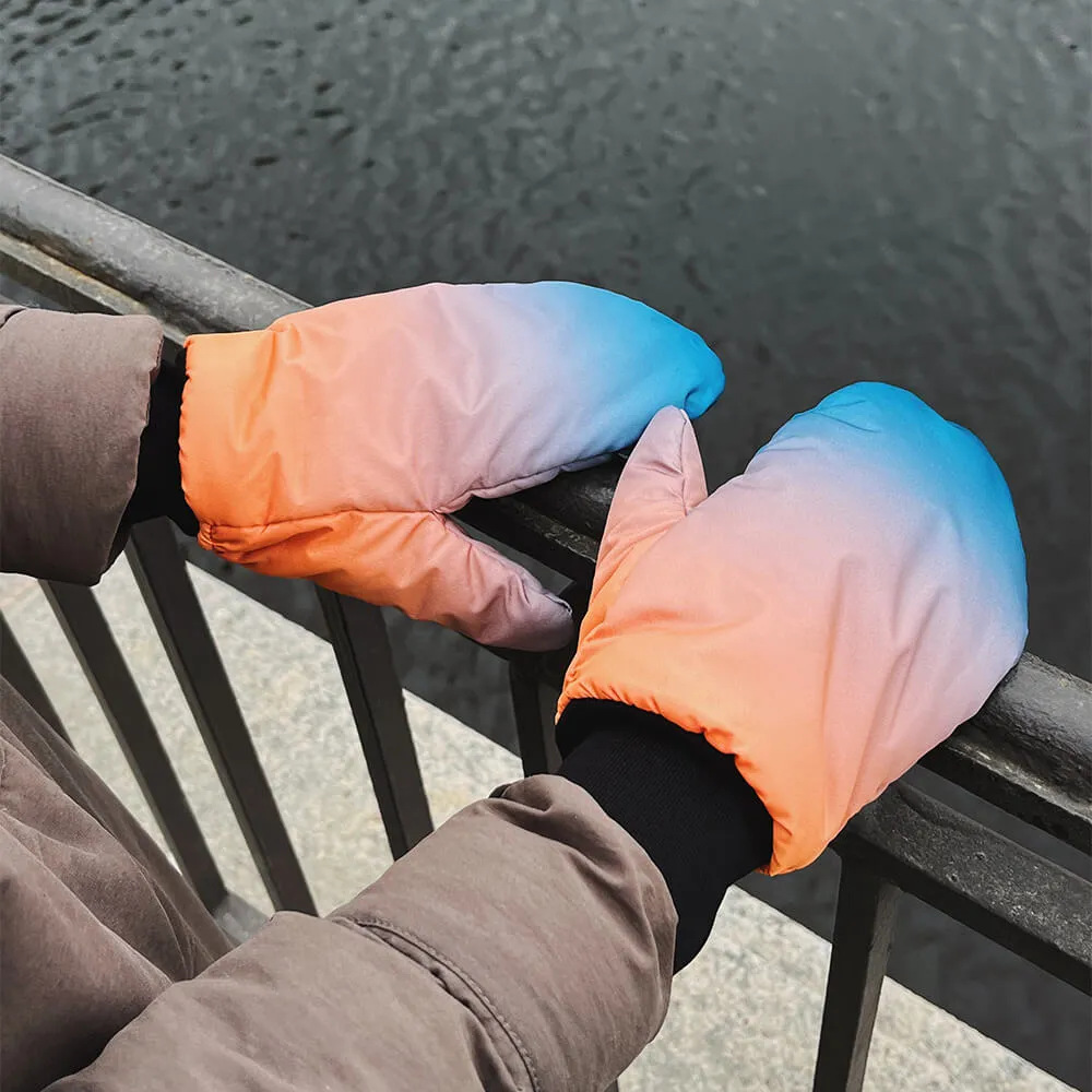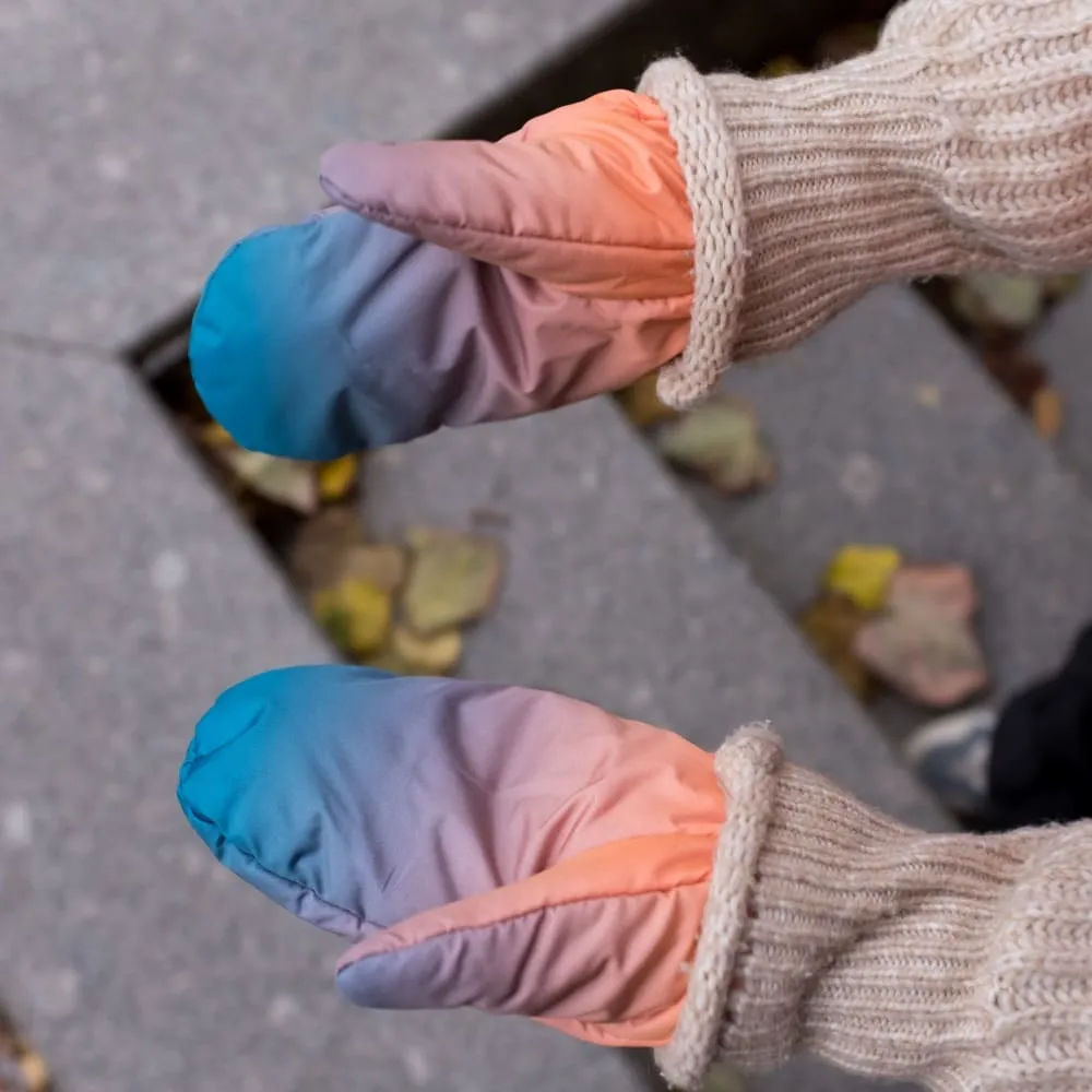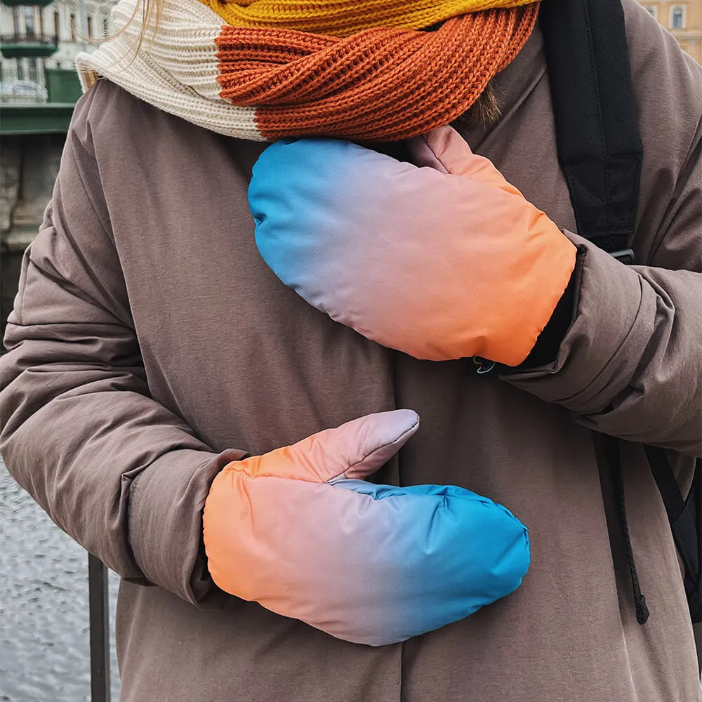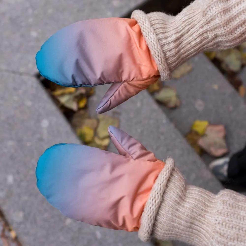 Варежки сделаны из непромокаемой и непродуваемой ткани плащевки, с тонким и теплым слоем утеплителя внутри и флисовым подкладом.