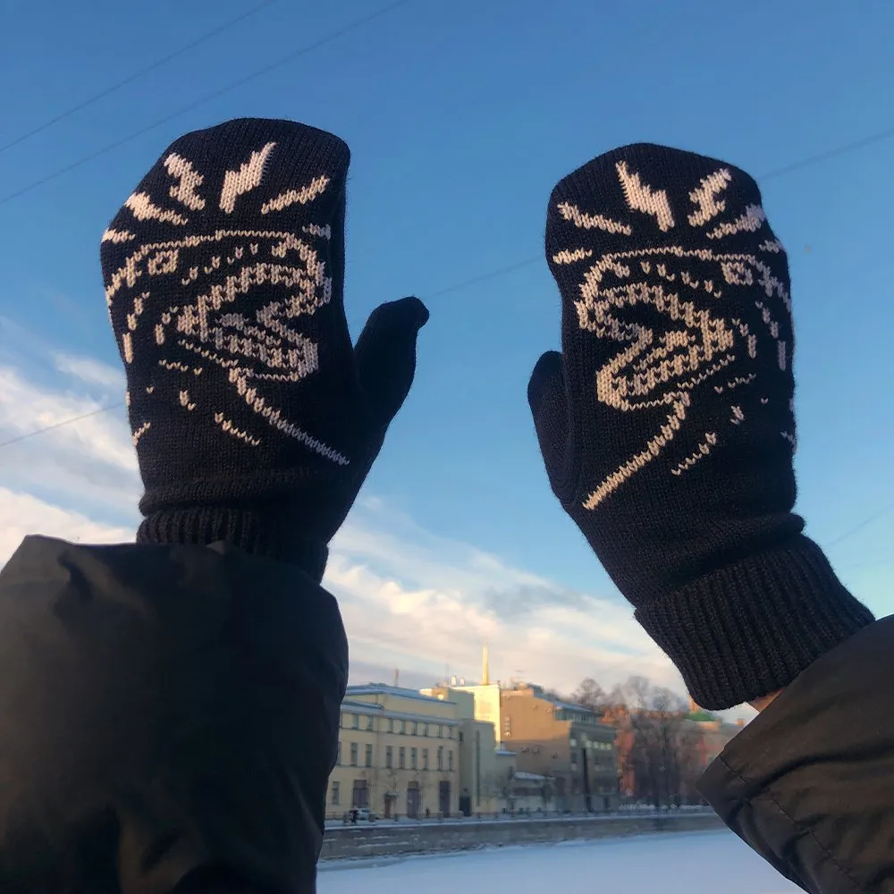 Варежки Nikita Gruzovik с динозавром черно-белые