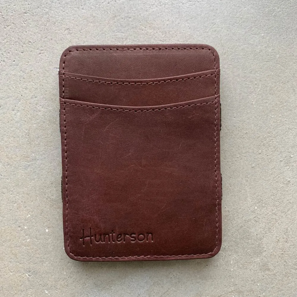 - Чтобы убрать купюры в бумажник, достаточно положить их поверх резиночек, закрыть бумажник и открыть с другой стороны.