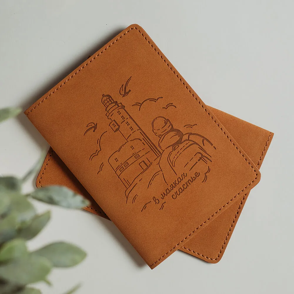 Обложка на паспорт с маяками из искусственной кожи.