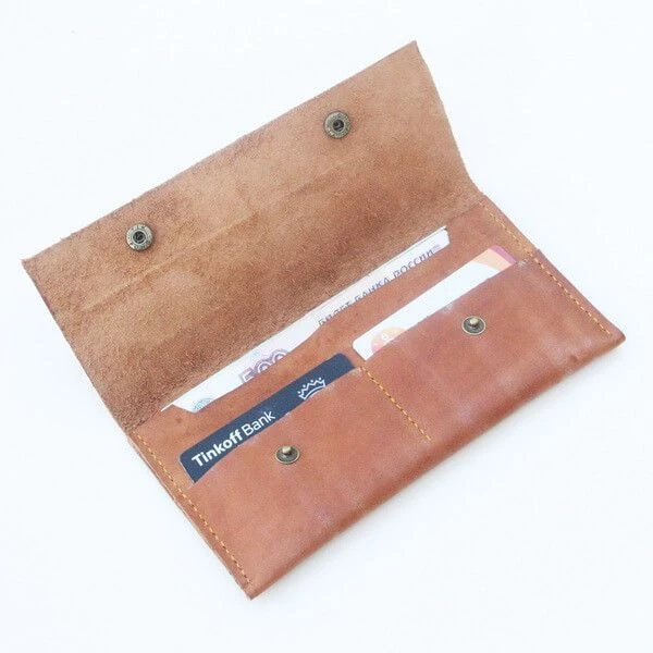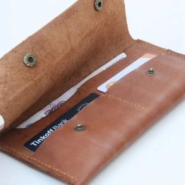 Умело сделанные в Нижнем Новгороде кожаные кошельки с отделением для мелочи.