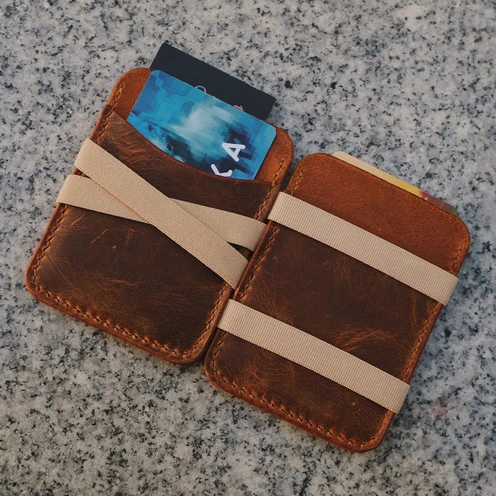 Кожаный волшебный кошелек - благодаря специальным резиночкам он легко захватывает любое количество купюр.