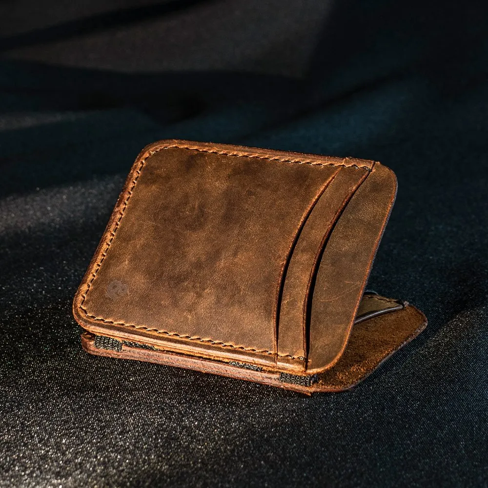 Кожаный волшебный кошелек - благодаря специальным резиночкам он легко захватывает любое количество купюр.
