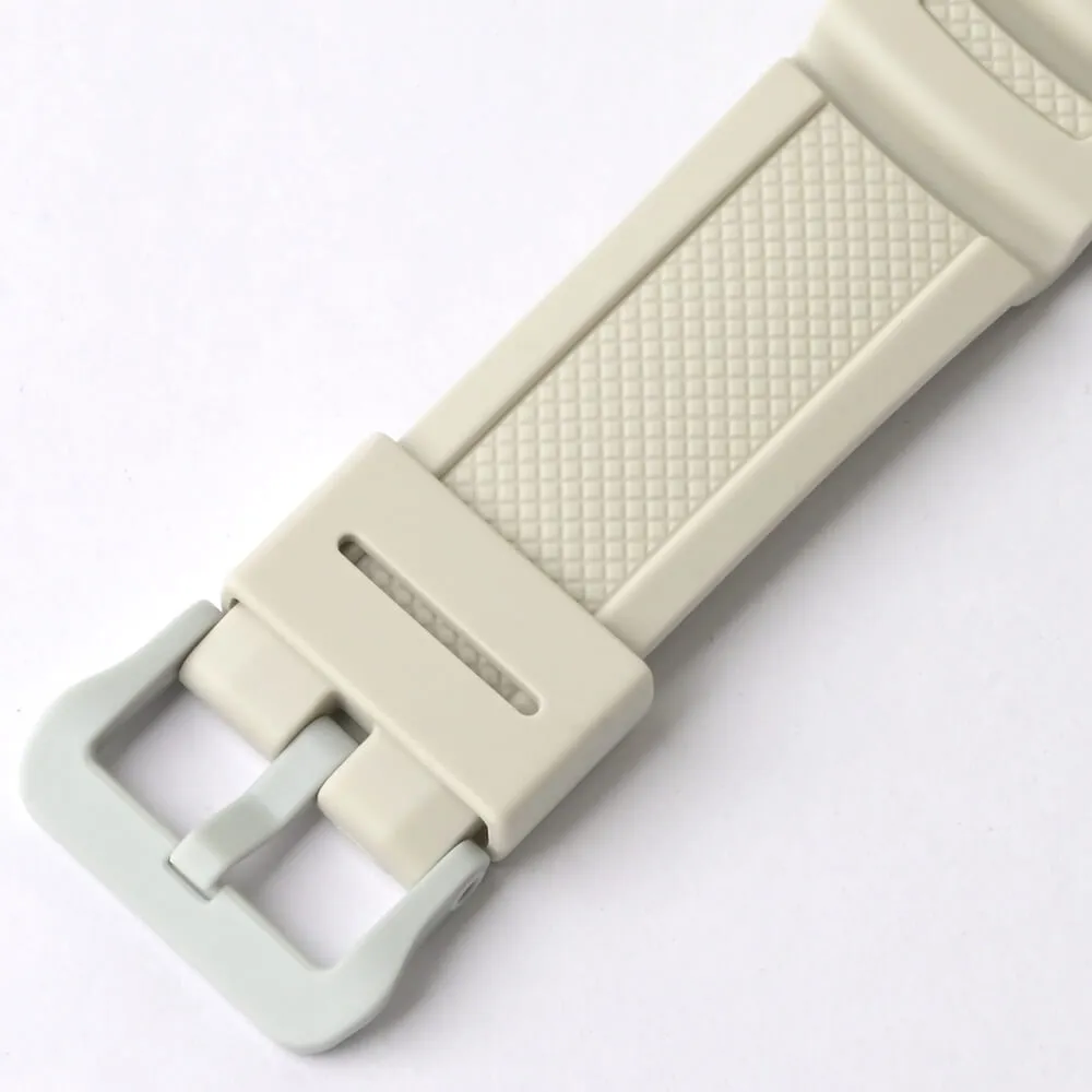 - Полимерный ремешок с тиснением, стандартная застежка с шипом.
