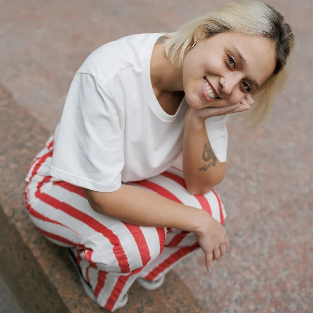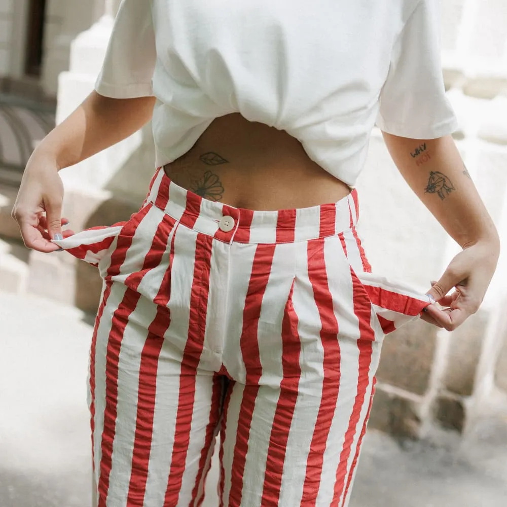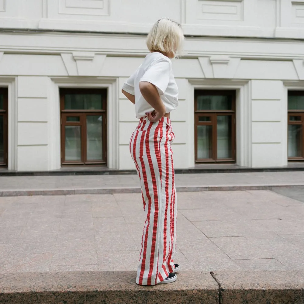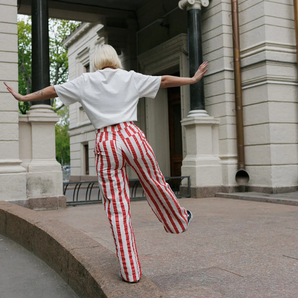 Брюки Thinking Mu Red Maxi Stripes Manolita