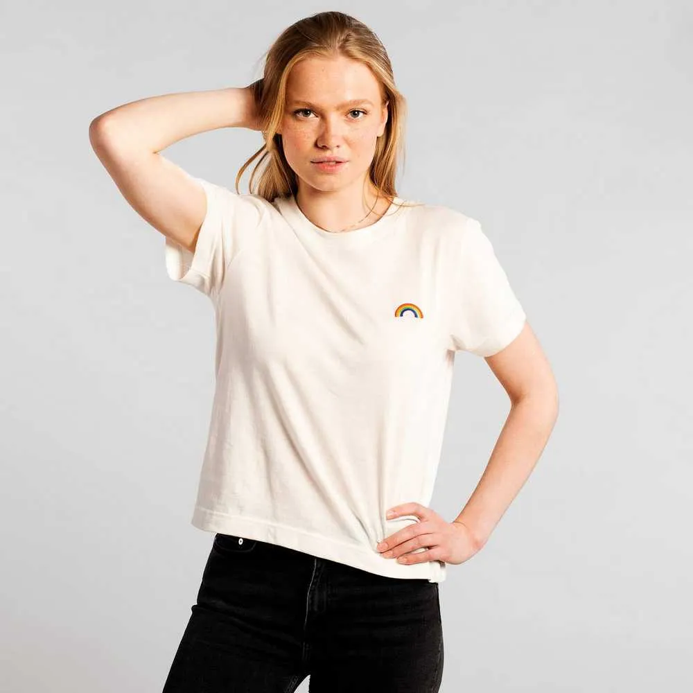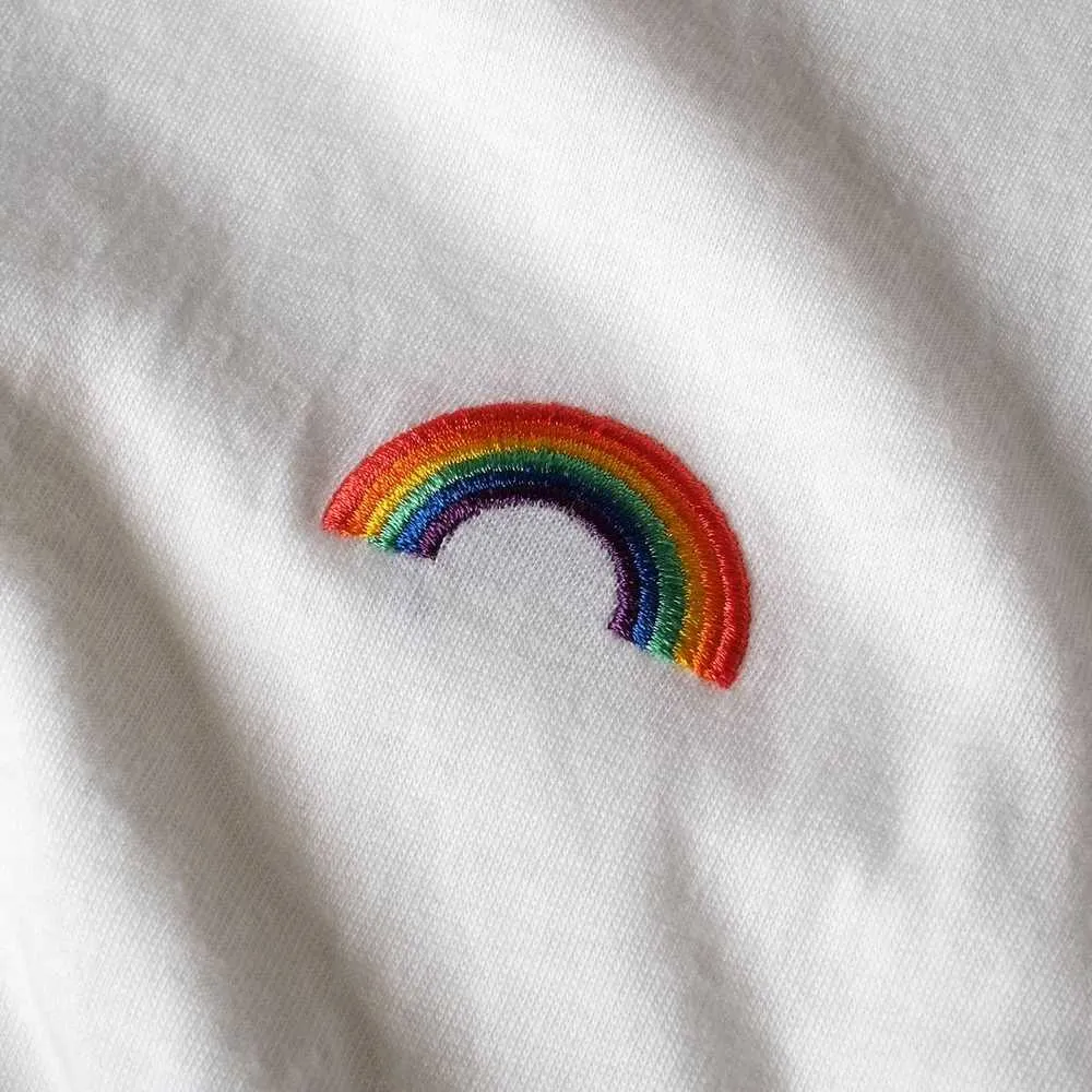 Лаконичная строгая футболка с жизнеутверждающей вышивкой. Сделана из органического хлопка шведским брендом Dedicated.