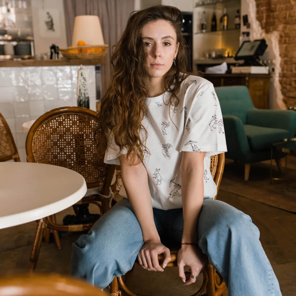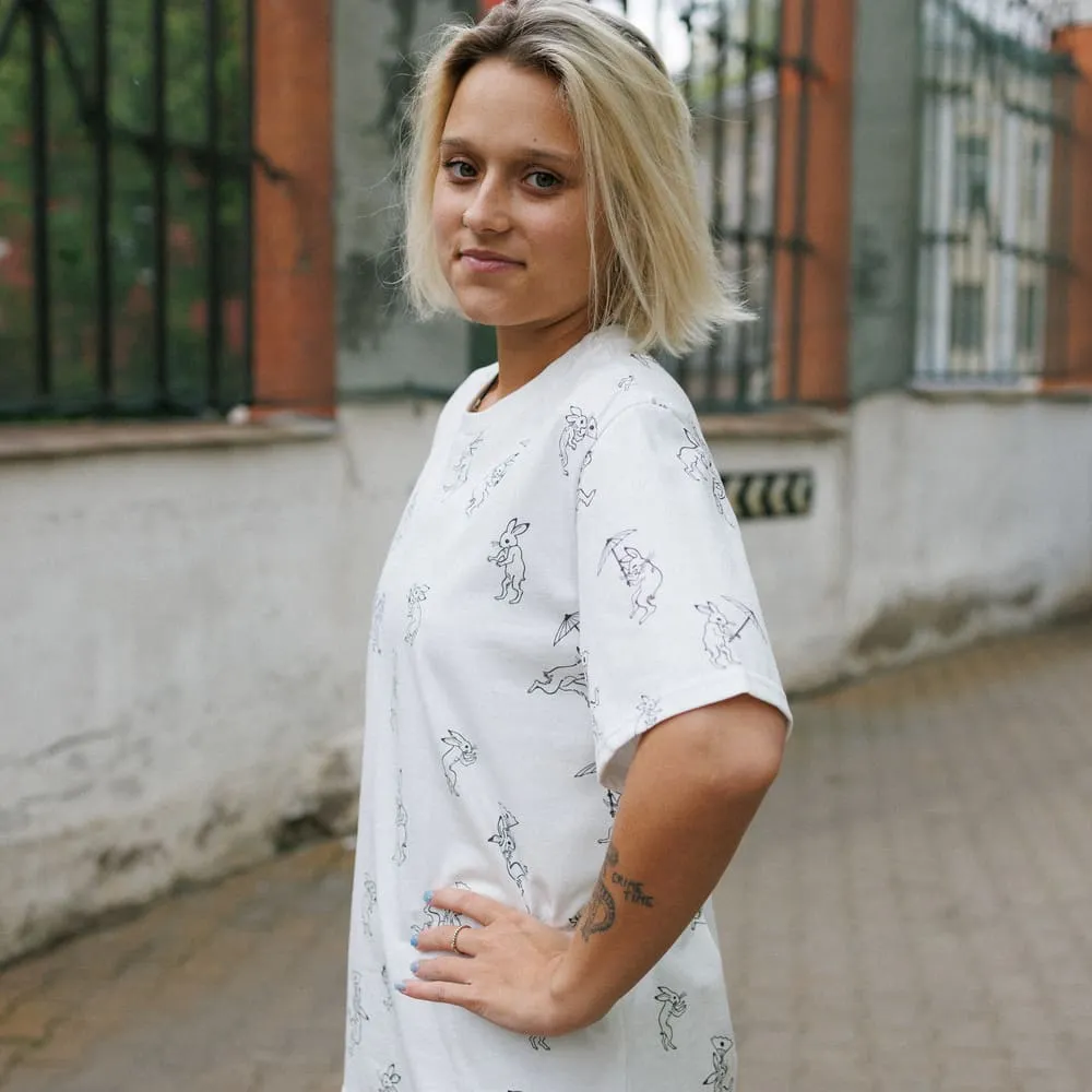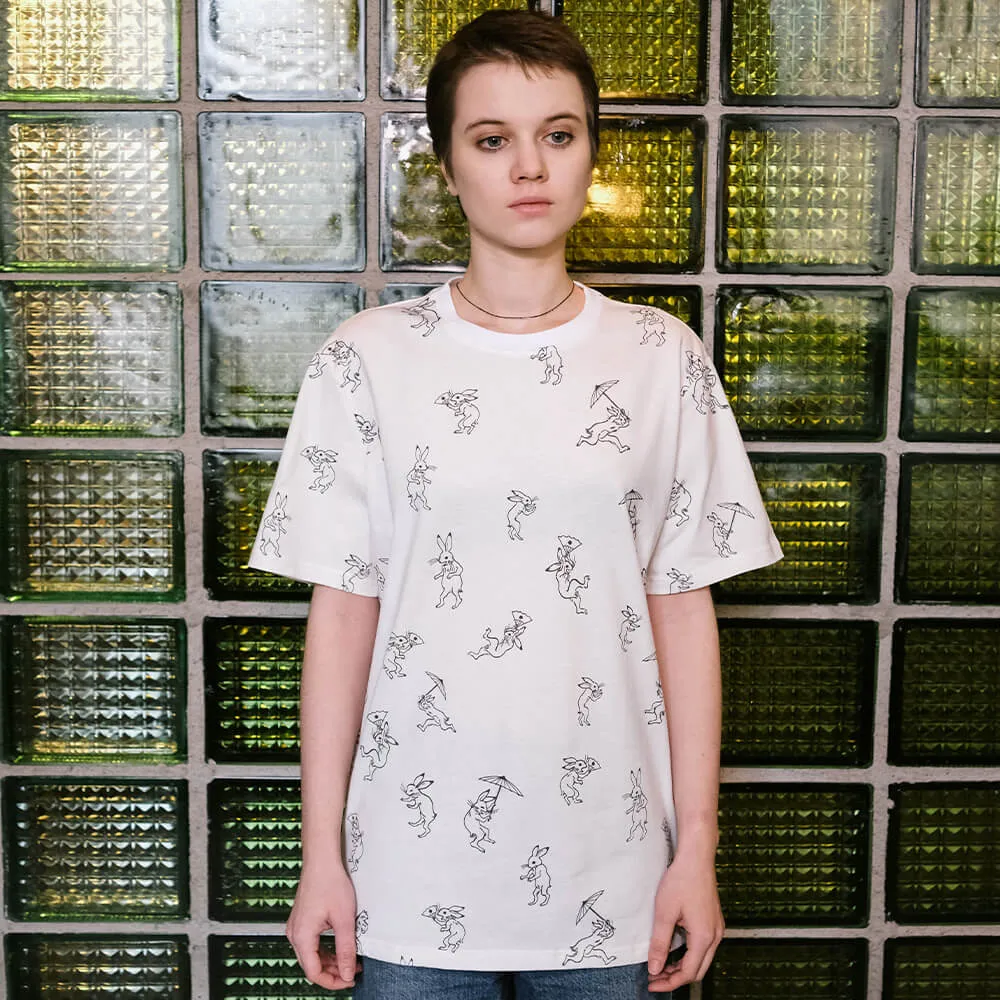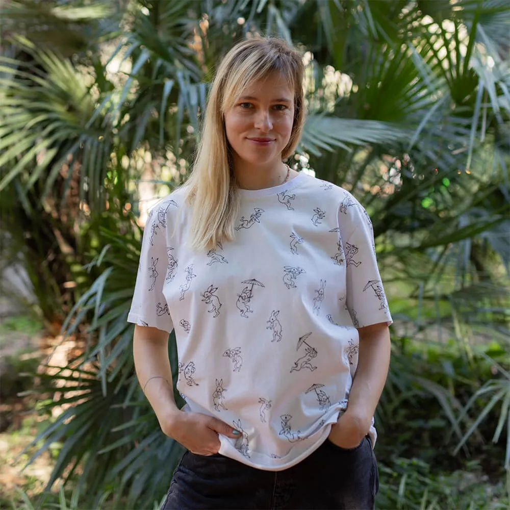Мы разрабатывали эту футболку очень долго, 3 раза отчаивались, но все же смогли сделать футболку, которая подходит людям разных полов и разных комплекций.