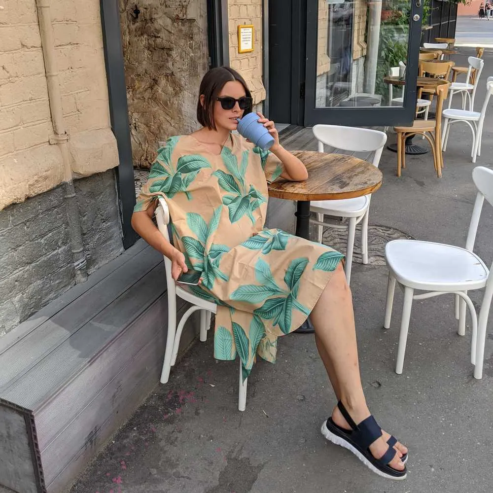 Удобный летний кафтан свободного кроя Dedicated для лёгких походов по набережной и посиделок в летнем кафе.