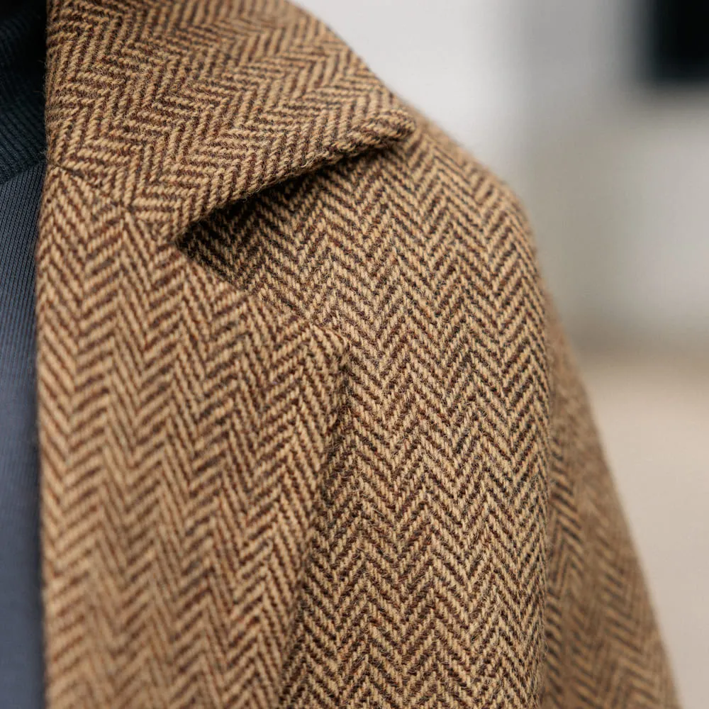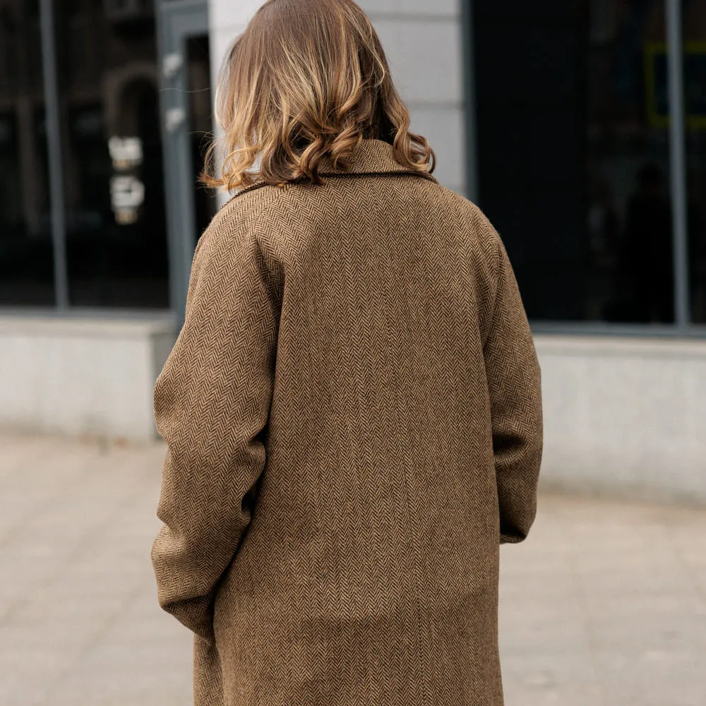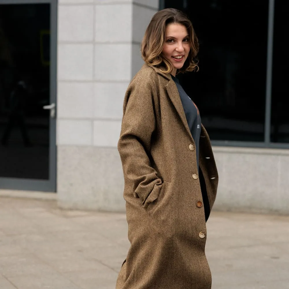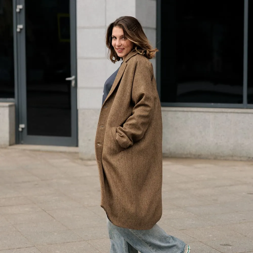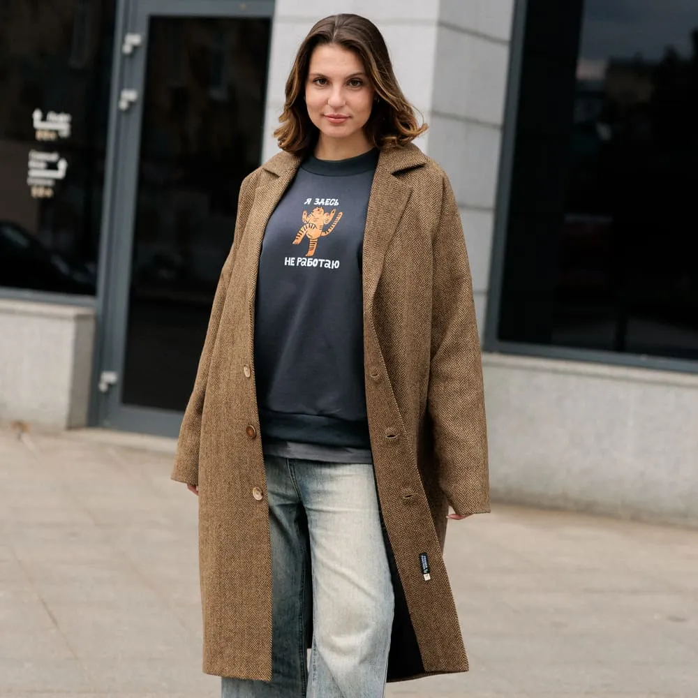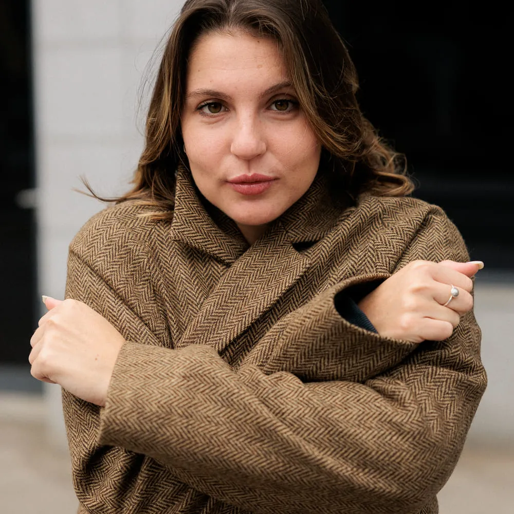 Наша гордость – однобортное пальто собственного производства Friend Function. Натуральная шерсть, высокий воротник с лацканами, застежка на пуговицы и узор елочка. Настоящая находка для человека любой формации – серьезного юриста, модного бариста или трушного петербуржца.