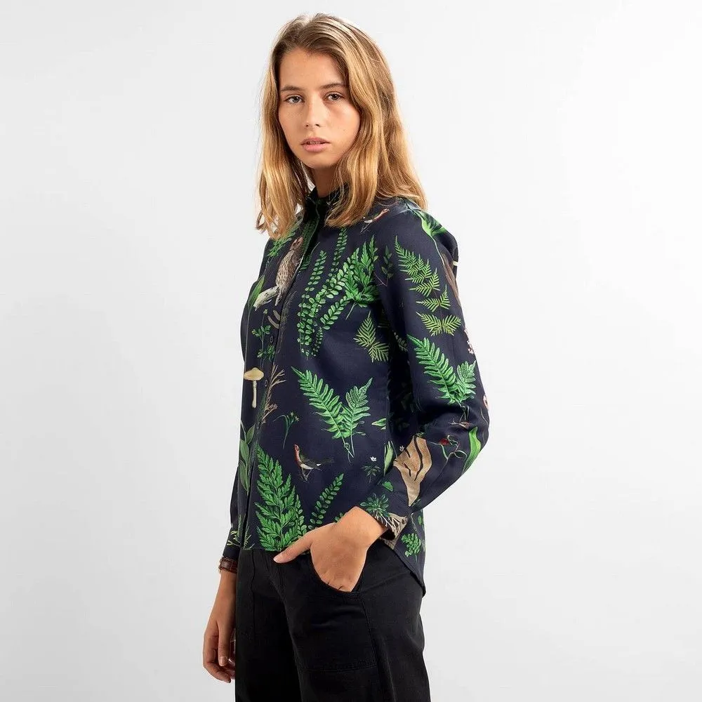 Изящная женская рубашка, которая будет уместна и на деловом ужине, и на свидании. Сделана из очень приятного телу органического хлопка шведским брендом Dedicated.