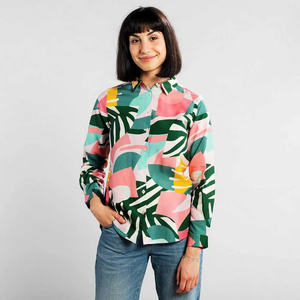 Изящная женская рубашка, которая будет уместна и на деловом ужине, и на свидании. Сделана из очень приятного телу органического хлопка шведским брендом Dedicated.