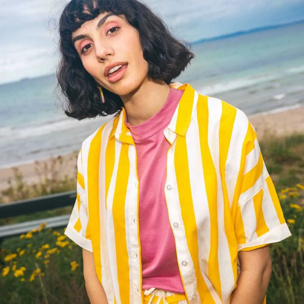 Изящная женская рубашка, которая будет уместна и на деловом ужине, и на свидании. Сделана из очень приятного телу органического хлопка шведским брендом Dedicated.