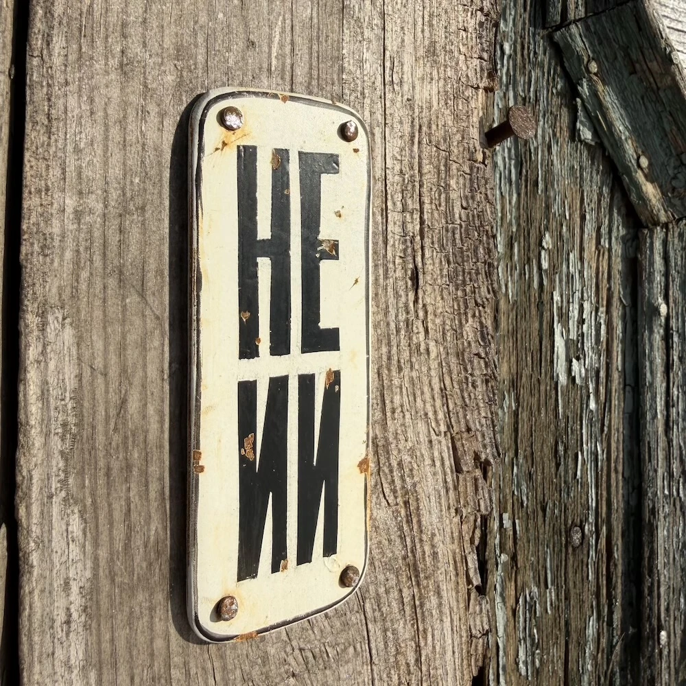 На этом фоне особенно приятно встретить что-то честное и простое. Например, металлическую табличку с короткой надписью: НЕ ИИ.