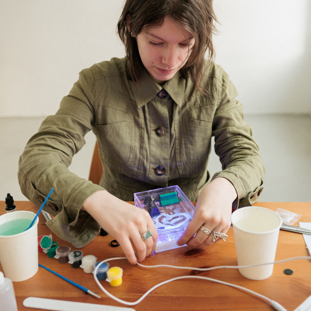Не пробуйте краски, клей, порошок/раствор и искусственный снег на вкус