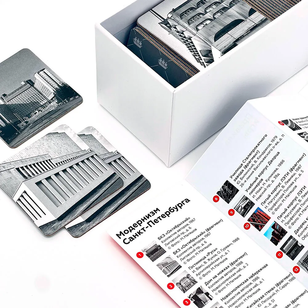 Увлекательная карточная игра на запоминание, созданная дизайн студией ABC design совместно с фотопроектом архитектуры советского модернизма beton_navsegda. Еще один интересный повод для путешествий.