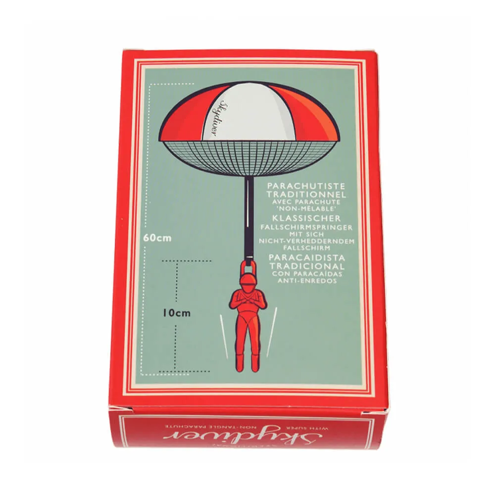 Классическая игрушка планер с не запутывающимся парашютом понравится не только детям, но и взрослым. Подбросьте парашютиста, как можно выше, в воздух и наблюдайте за его плавным полетом.