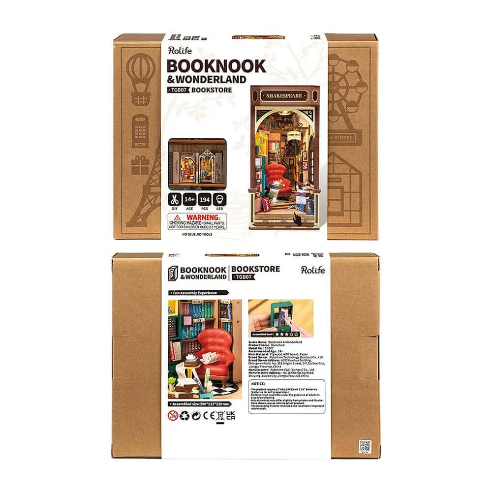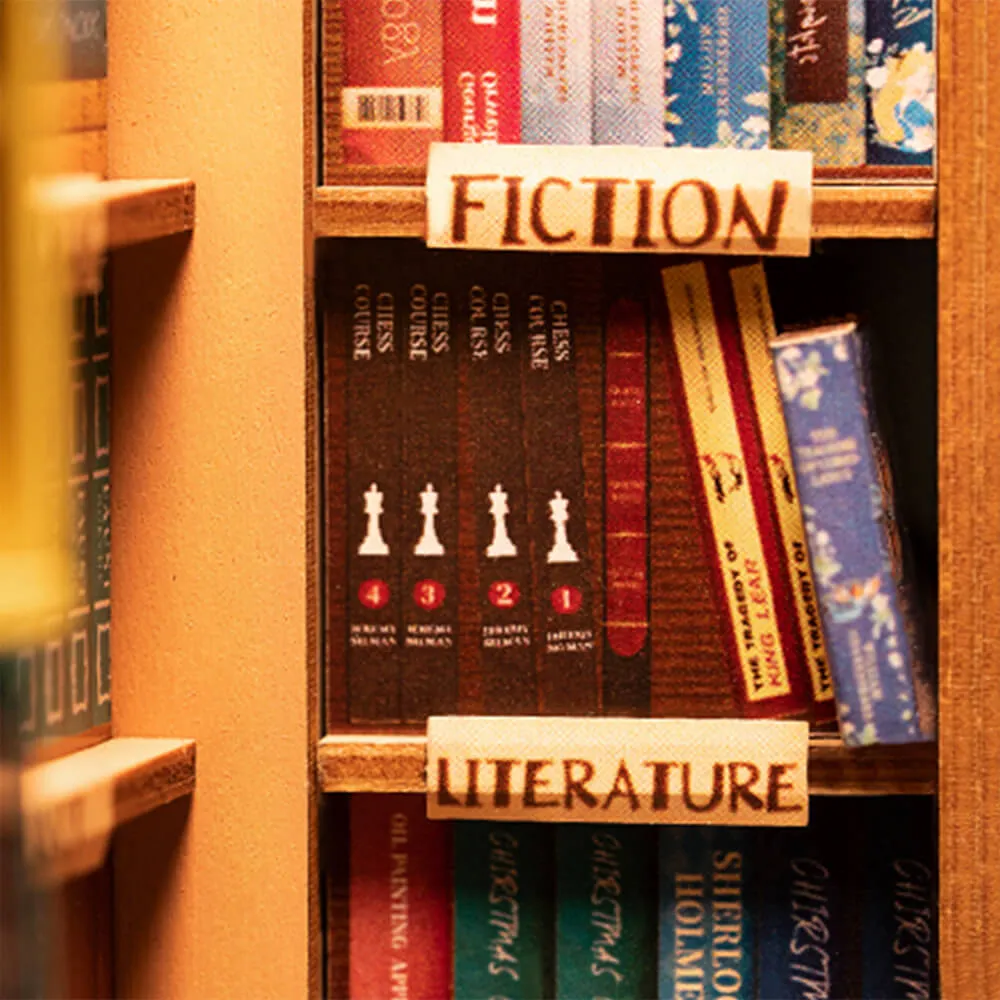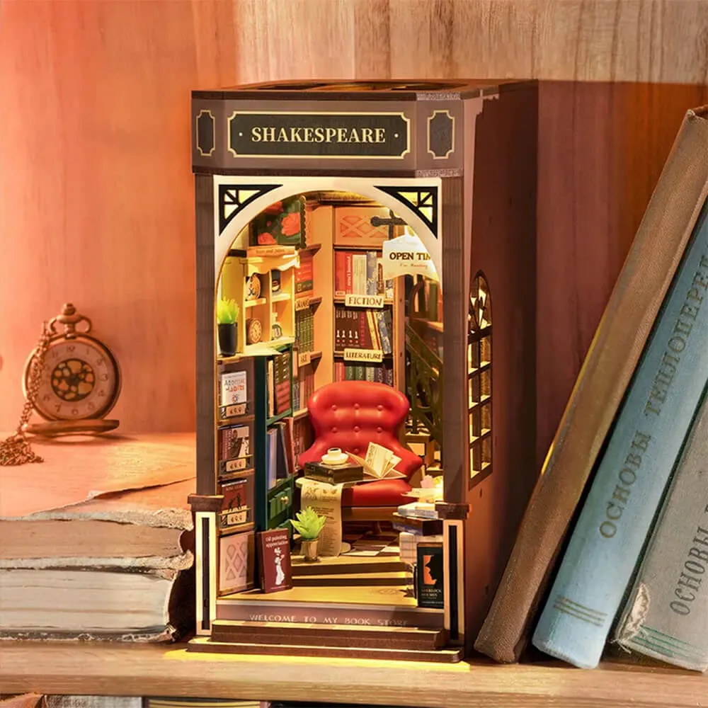 Румбокс интерьерный Bookstore - сборная модель миниатюрного книжного магазина Shakespeare. Все детали продуманы: книги расставлены на полках по жанрам, есть уголок с письменными принадлежностями и чашечка кофе. Красное кожаное кресло посреди уютного книжного магазина, где хочется остаться до самого закрытия.