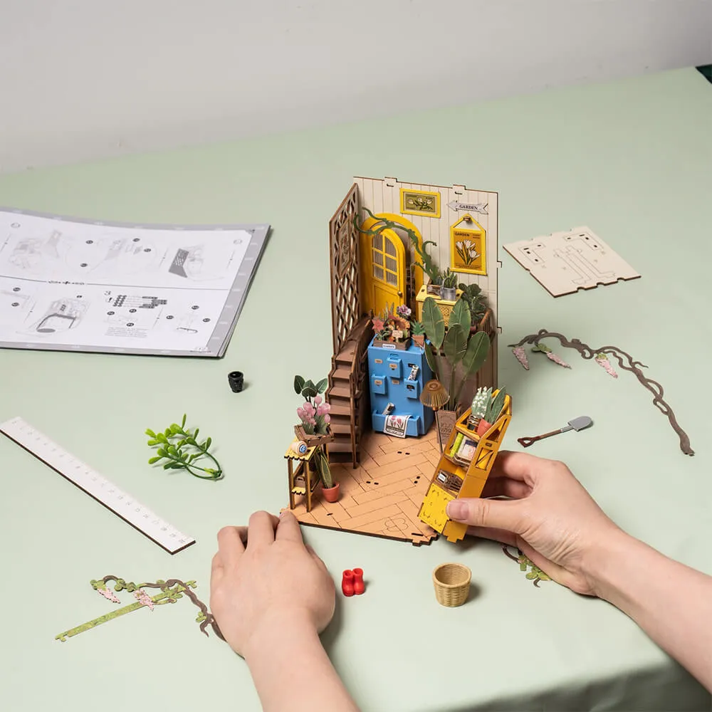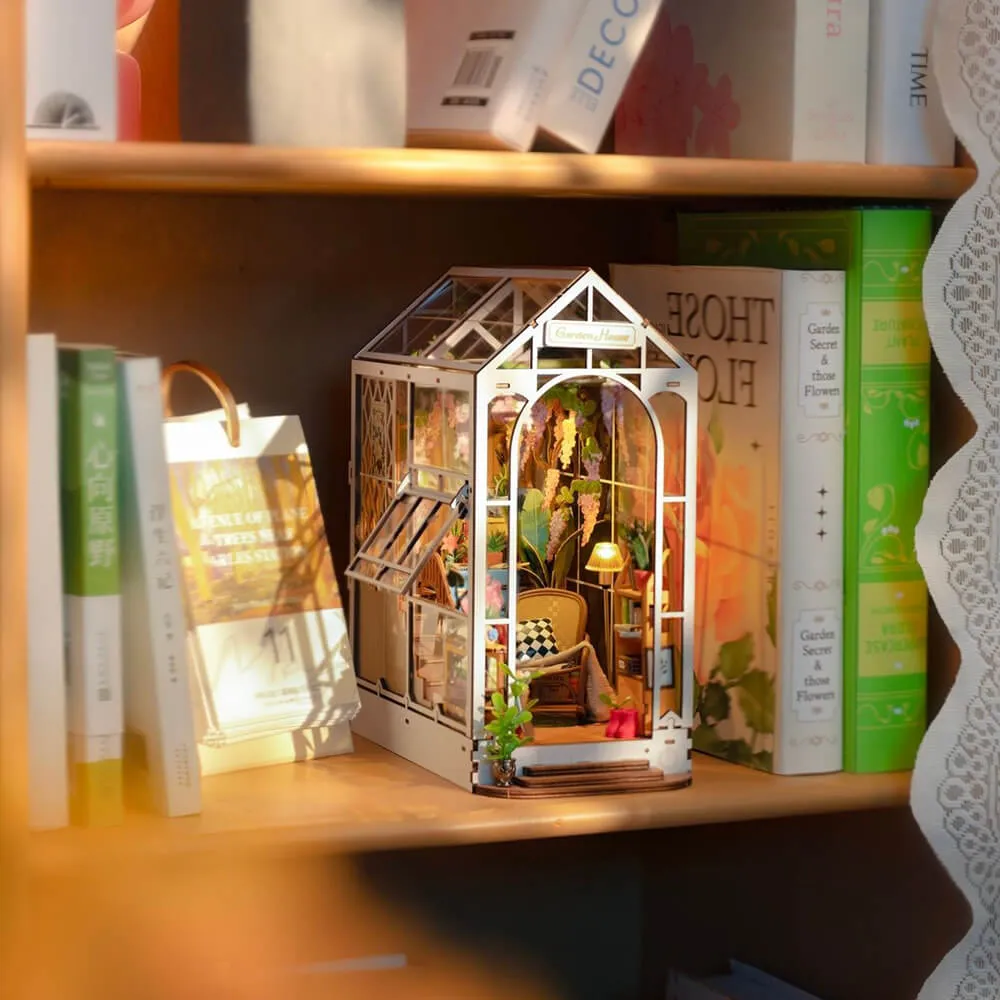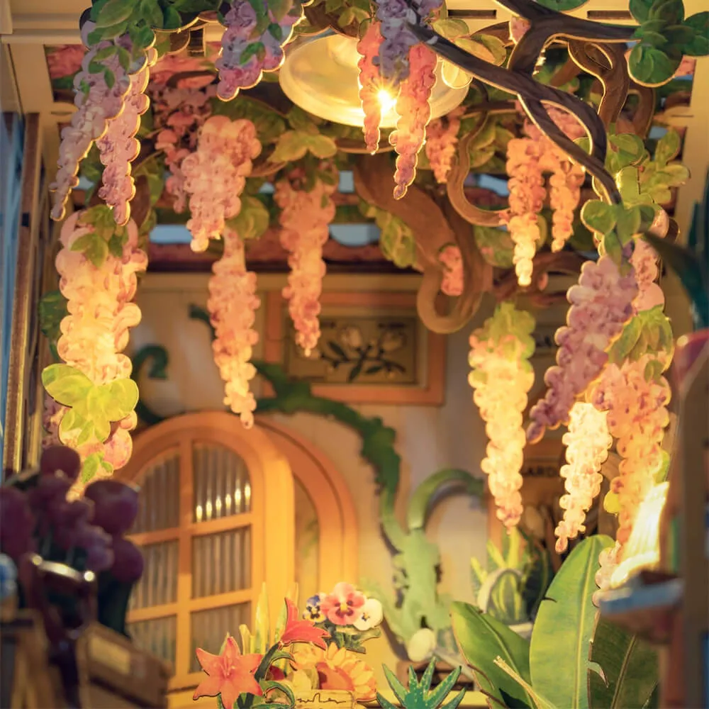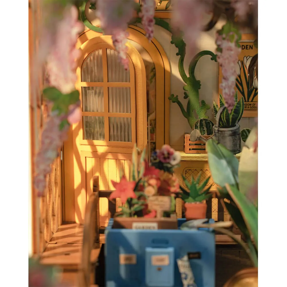 Румбокс интерьерный Garden House - сборная модель очаровательного миниатюрного цветочного домика, который идеально подходит для хорошей книги и чашечки кофе. Маленькие растения, цветы, вазы, кашпо, деревянные шкафчики и множество фотографий и картин делают его идеальным подарком садоводу.