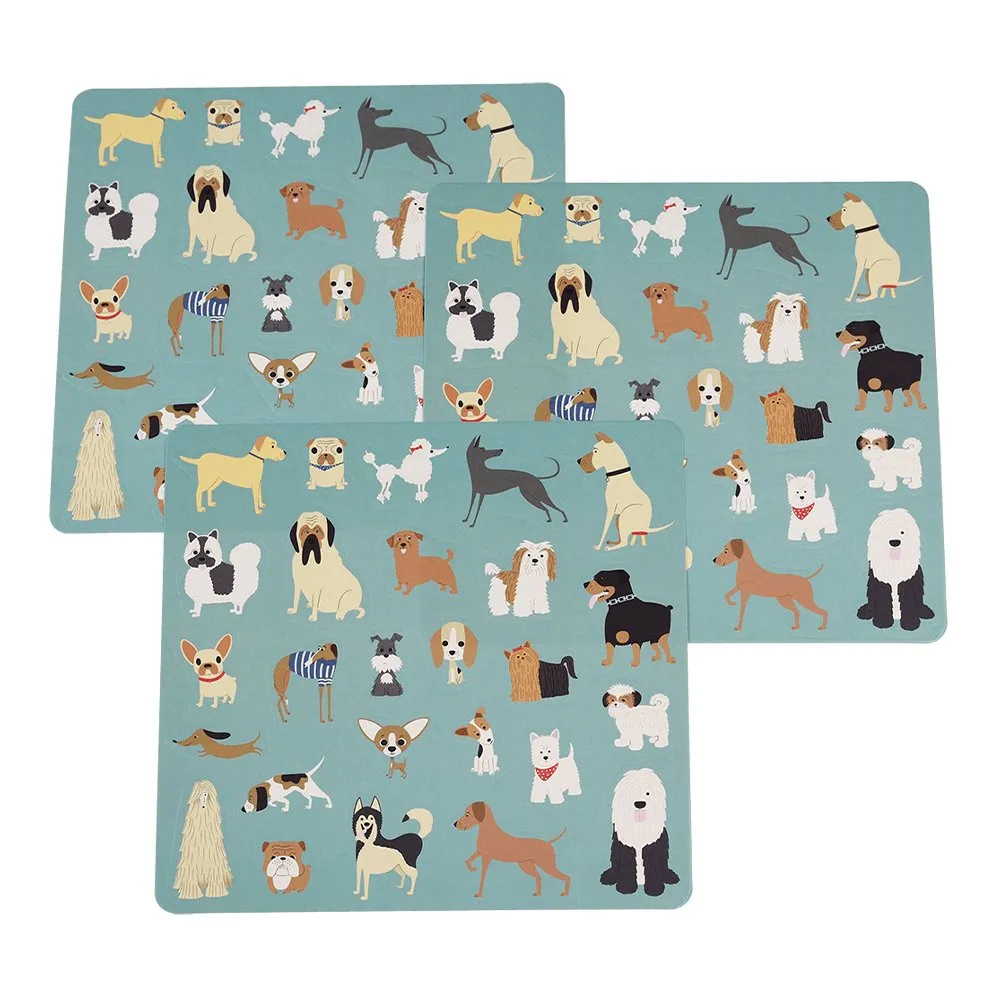 Три листа с красочными наклейками собак идеально подходят для того, чтобы добавить веселья и индивидуальности блокнотам и папкам.