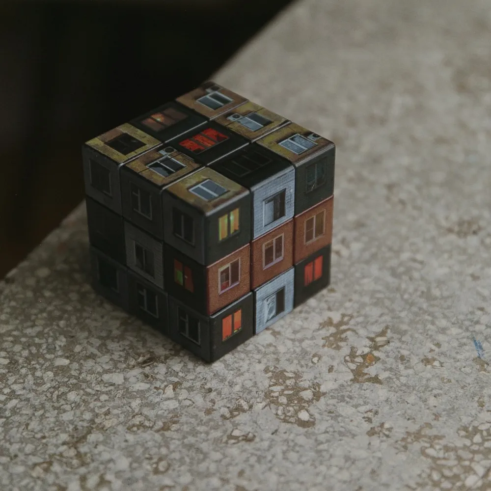 Знаменитая игрушка-головоломка в ее переработанном урбанистическом виде. Та самая, родная панелька.