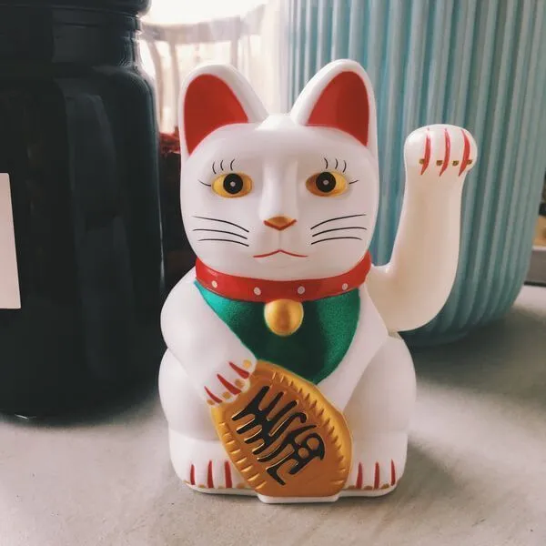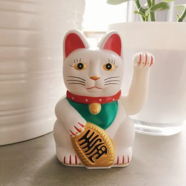Манэки-нэко (яп. 招き猫, буквально «Приглашающий кот», «Манящий кот», «Зовущая кошка»; также известный как «Кот счастья», «Денежный кот» или «Кот удачи») — распространённая японская скульптура, часто сделанная из фарфора или керамики, которая, как полагают, приносит её владельцу удачу. Скульптура изображает кошку с поднятой вертикально лапой, и обычно выставляется в витринах магазинов, в ресторанах, комнатах патинко, на складах и в других местах. Кошка, поднявшая правую лапу привлекает деньги, удачу, а поднявшая левую лапу — клиентов. Встречаются также «манэки-нэко» с двумя поднятыми лапами.20% кошек держат лапой Кобан (золотая монета эпохи Эдо). Кобан — монета стоимостью в один рё, но на монете, которую держит кошка, написано — десять миллионов рё.