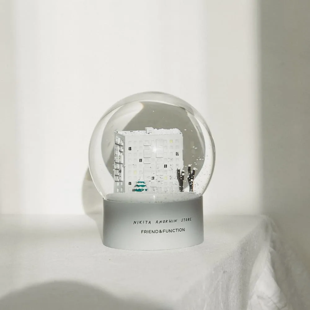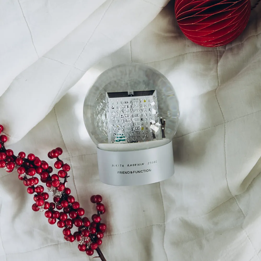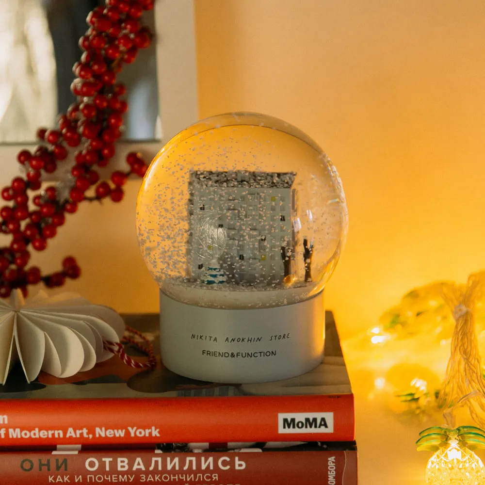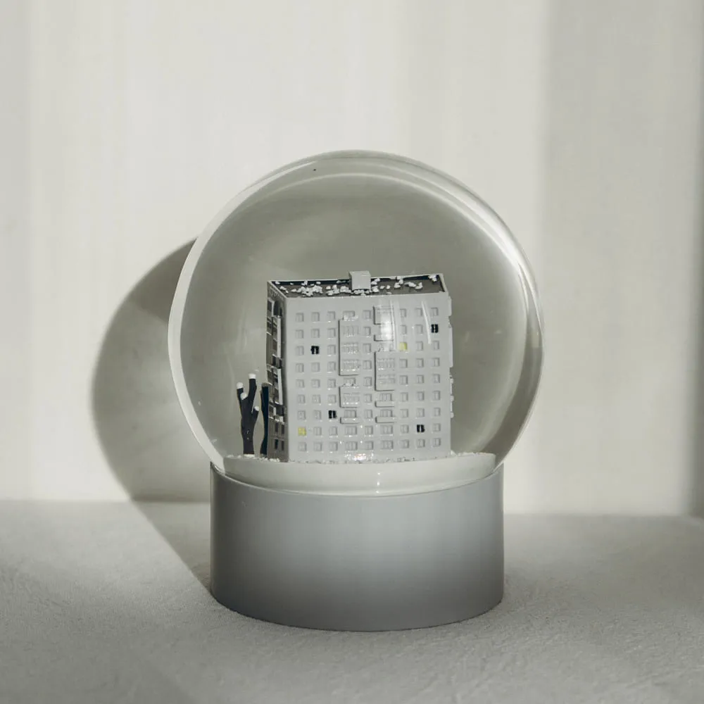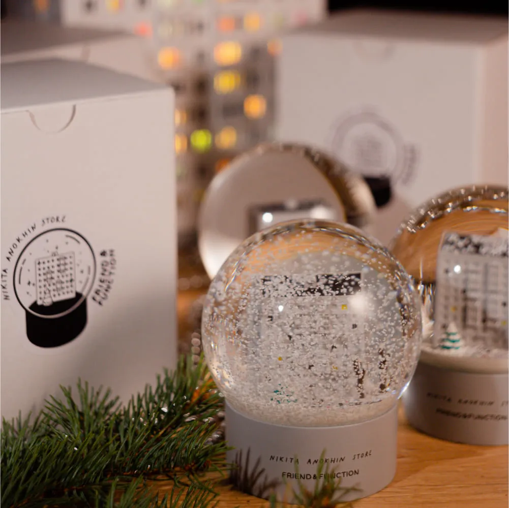 Снежный шар Panelka — результат креативной коллаборации брендов Anokhin Store и Friend Function, который воплощает в себе урбанистическую эстетику и ностальгию по архитектуре советских времен. Внутри шара — детализированная модель панельной девятиэтажки, окруженная мягкими снежными вихрями, иллюстрирующими родной зимний городской пейзаж.