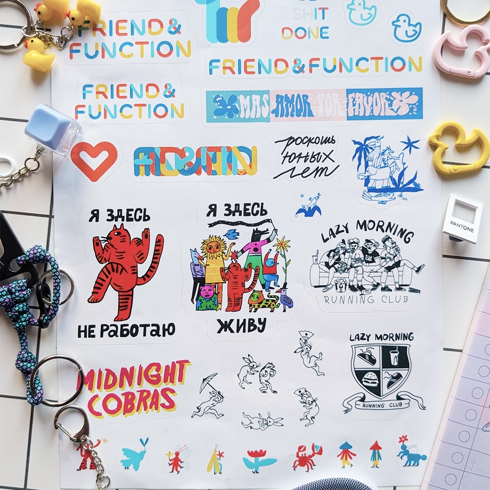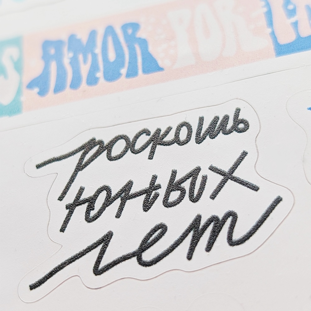 Набор крутых наклеек на прозрачной подложке в наших фирменных цветах и уже любимыми принтами.