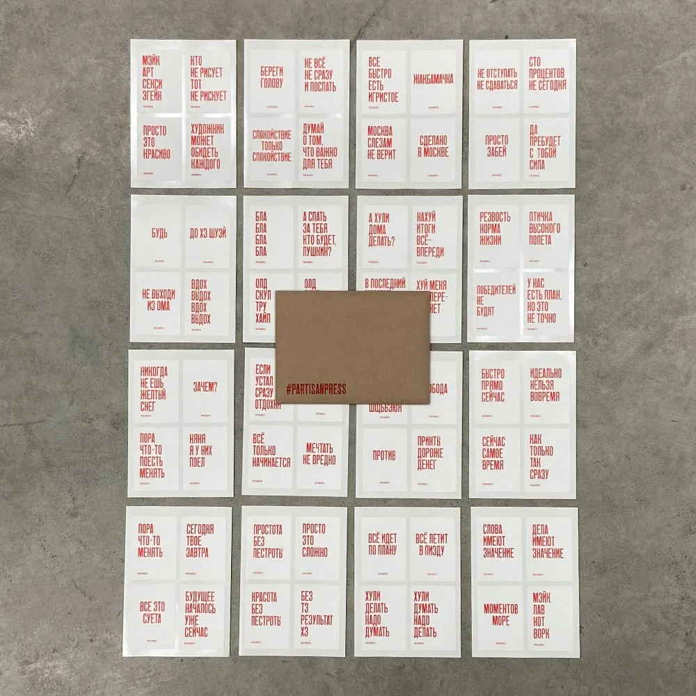 - Размер стикеров — 53х75 мм — по пропорциям совпадают с плакатами.