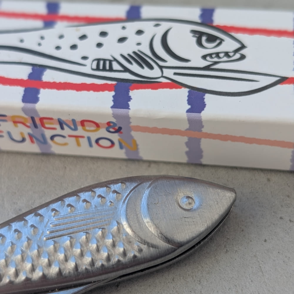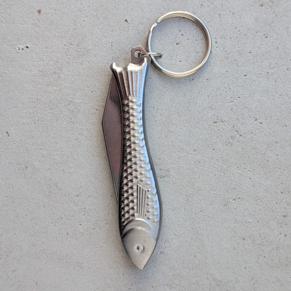 Брелок для ключей + карманный нож в форме рыбы станет отличным подарком для путешественника.