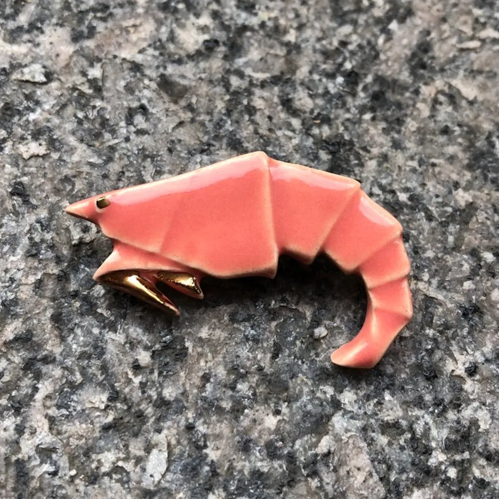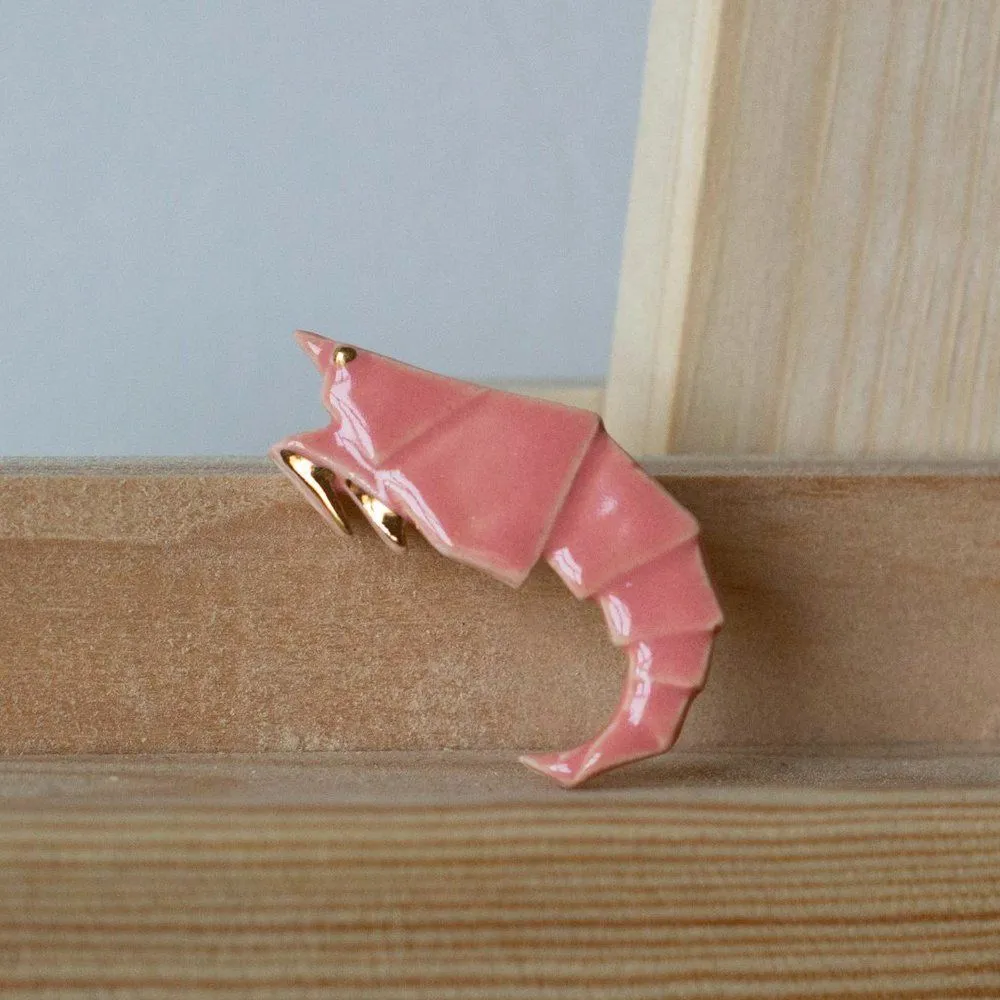 Аксессуар в виде креветки с золотом на лапках - прекрасный штрих для любителей неординарных решений.