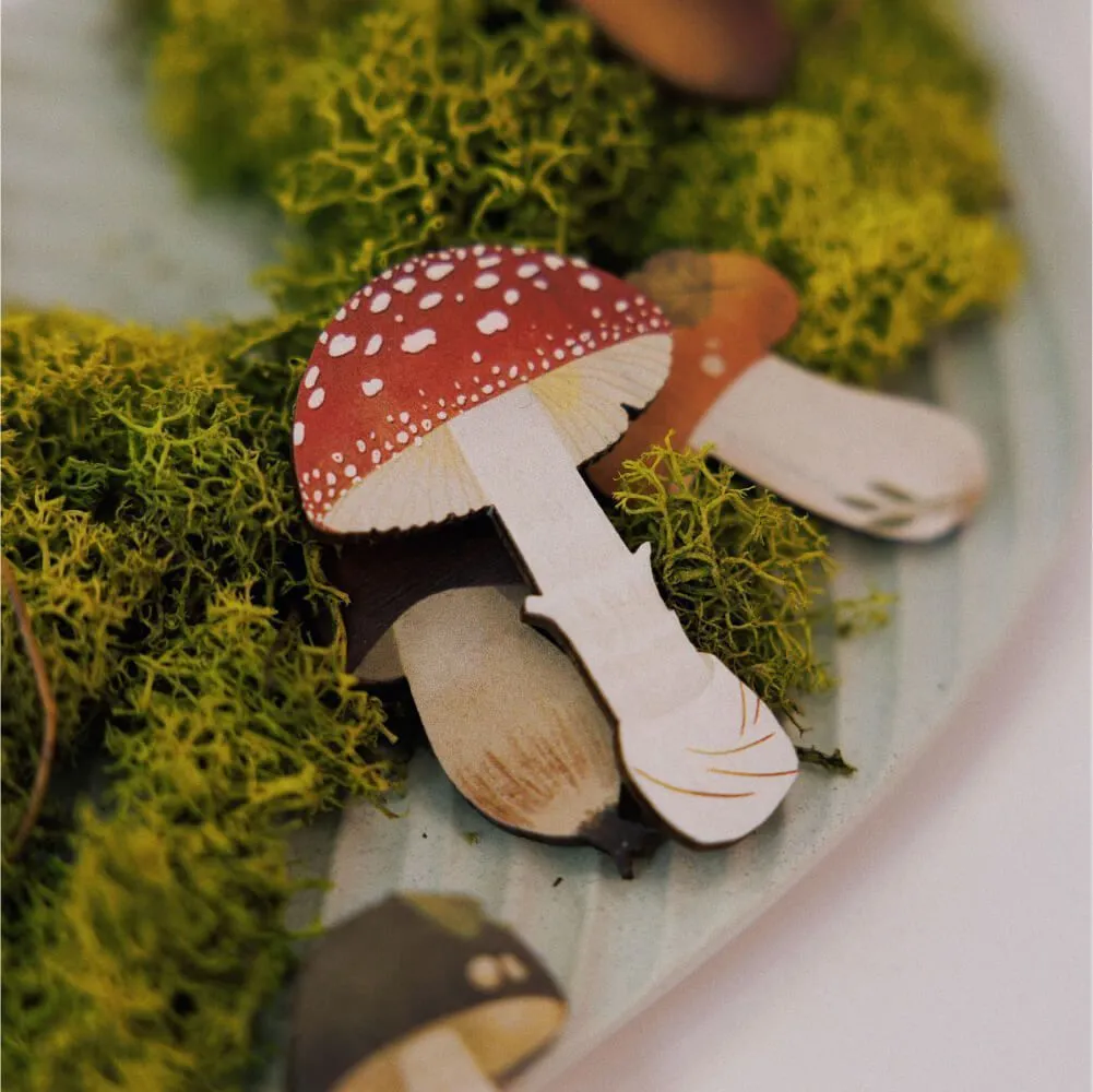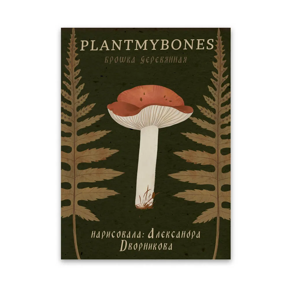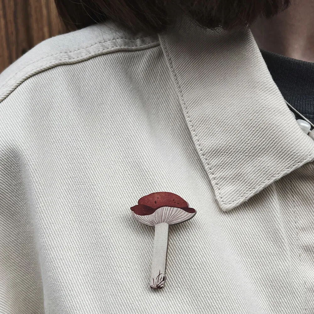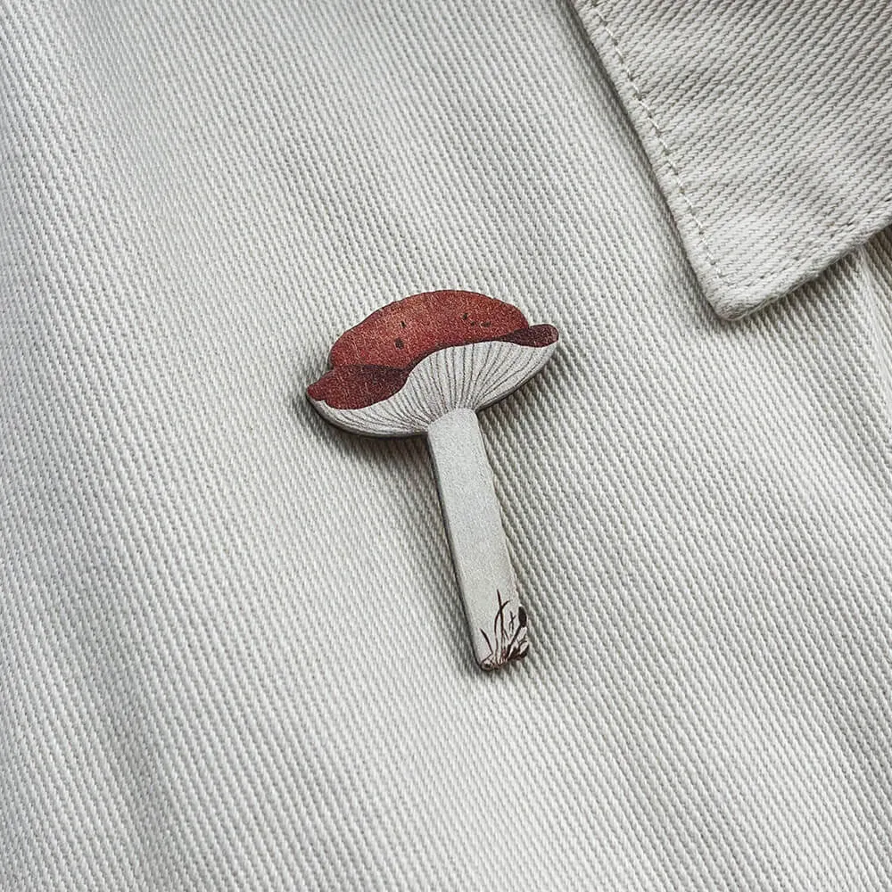 Брошка Сыроежка из дерева с аккуратным замочком на обороте. Отлично маскируется под настоящие грибы.
