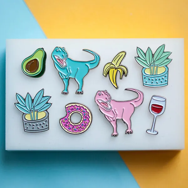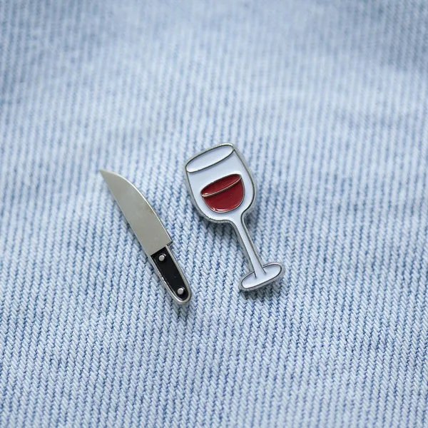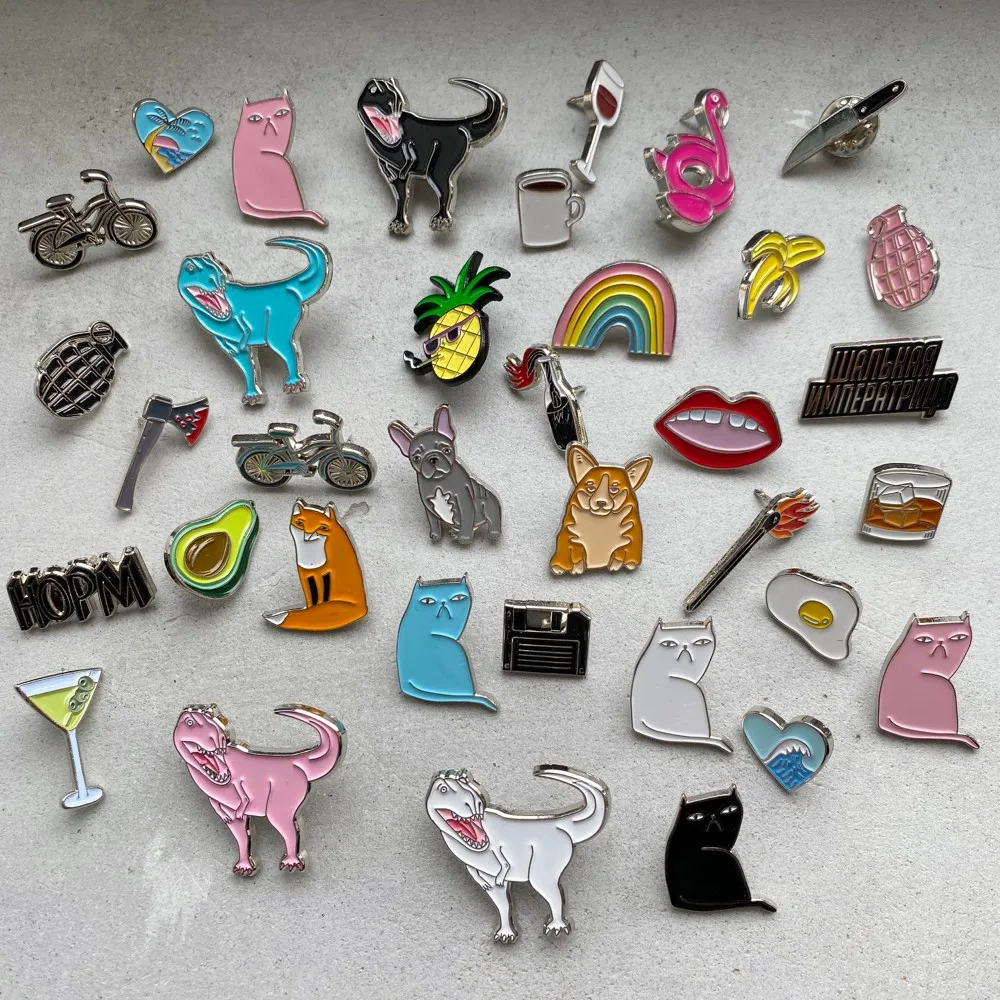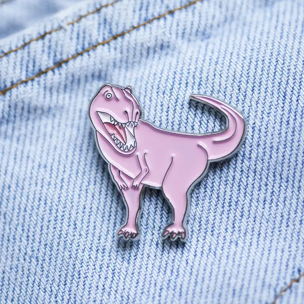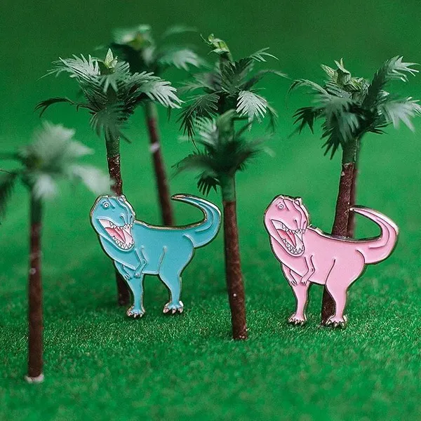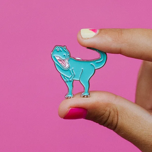 Металлические значки с красивыми динозаврами, винишком или даже ножом. Сделано в Москве.