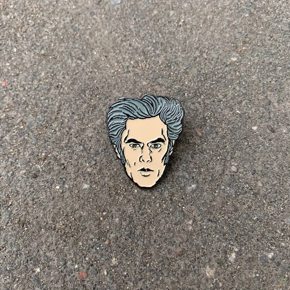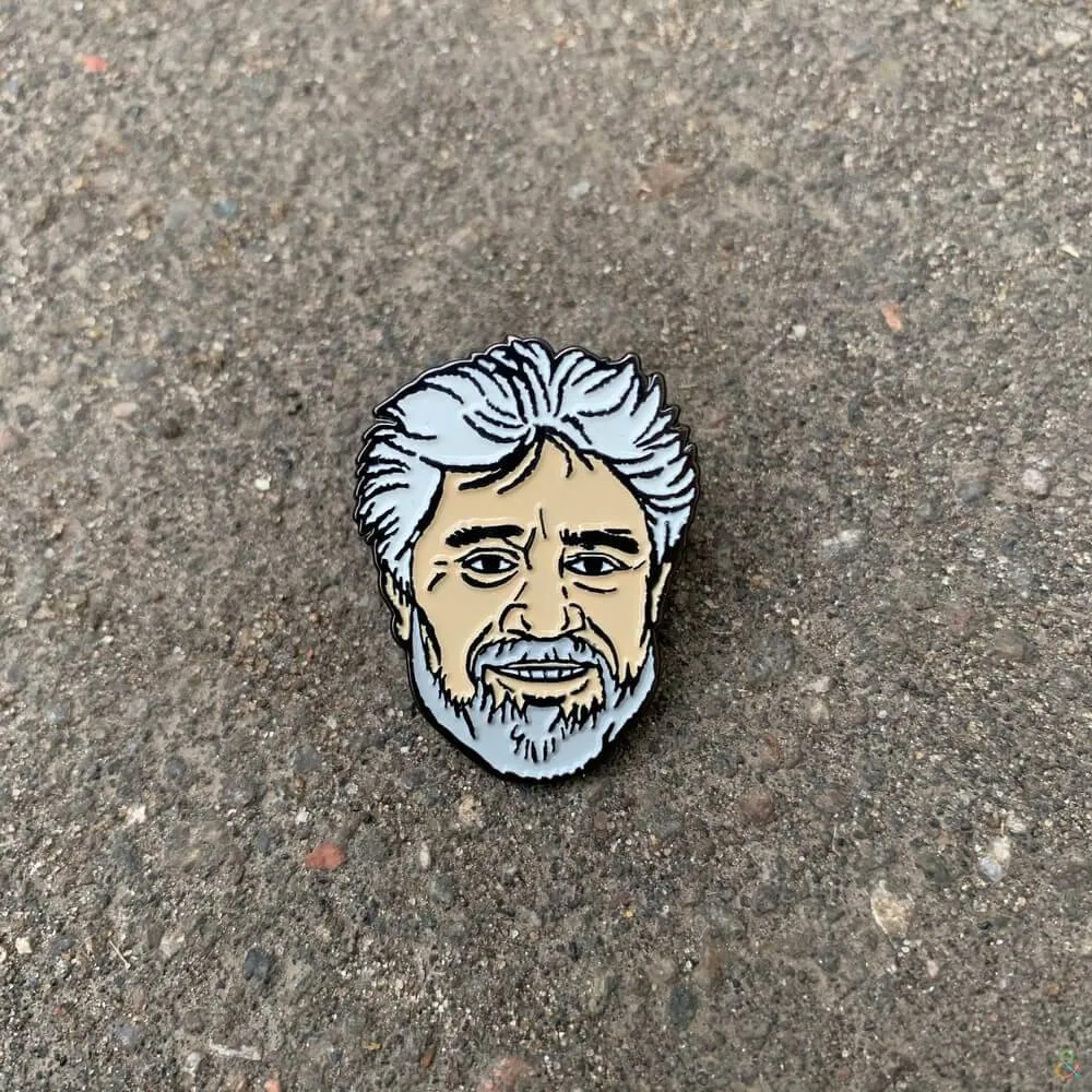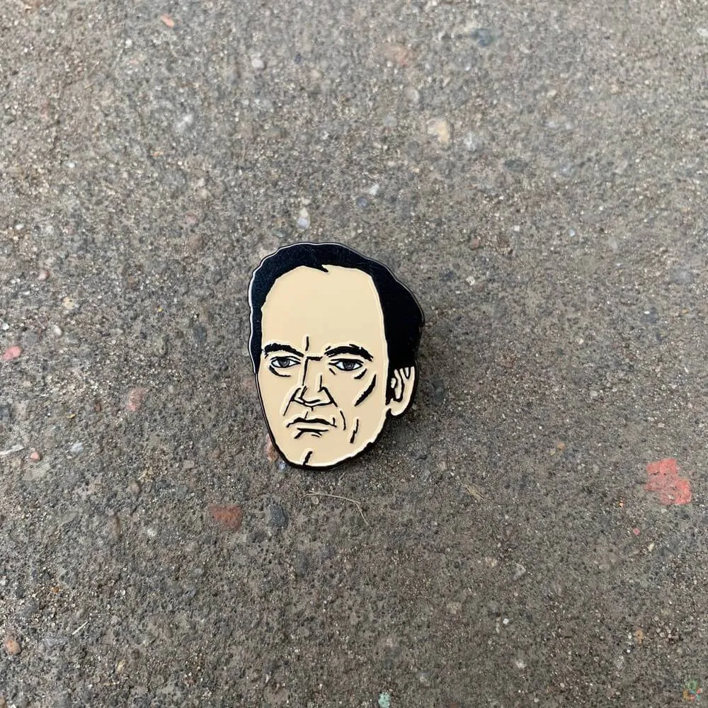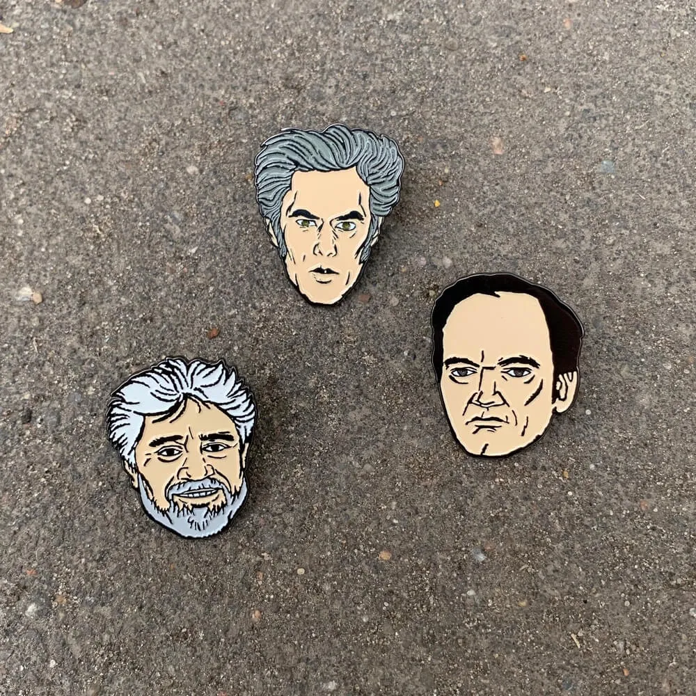 Значки-пины с ликами культовых режиссеров: Тарантино, Альмодовара и Джармуша.