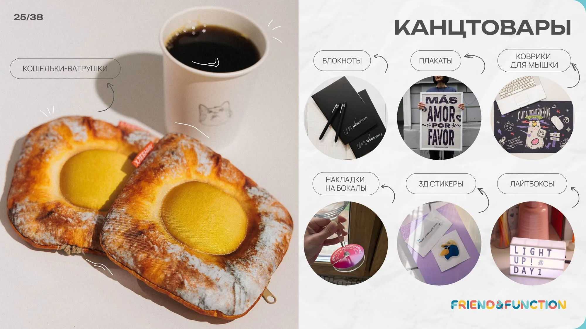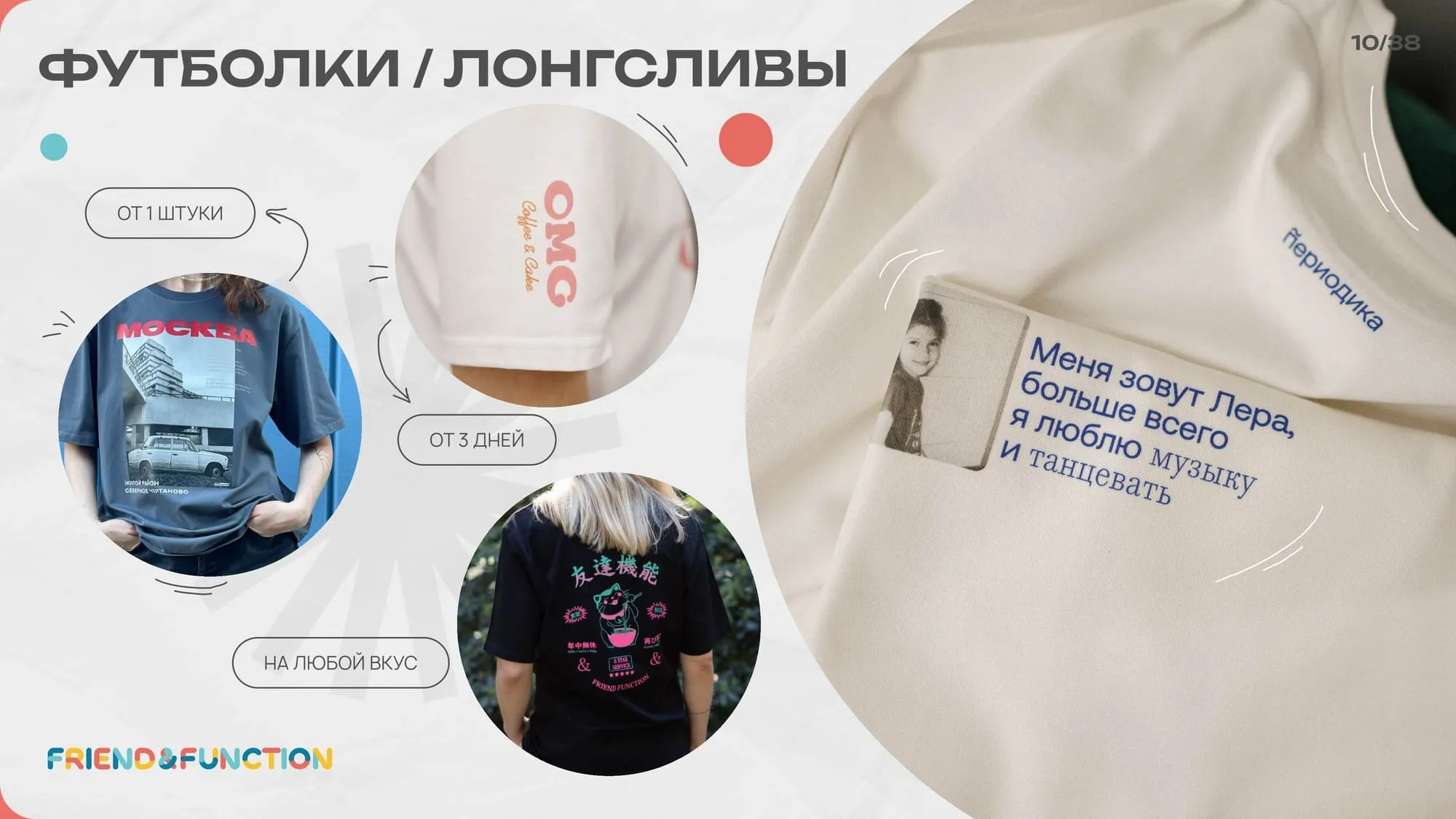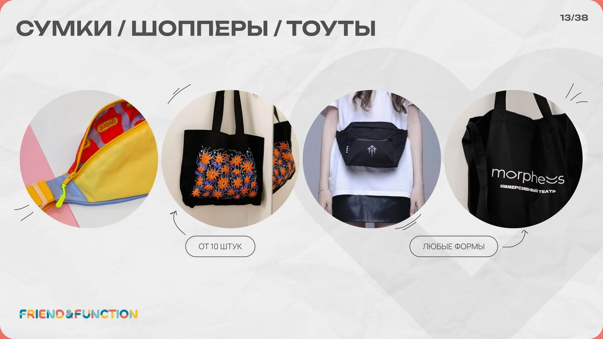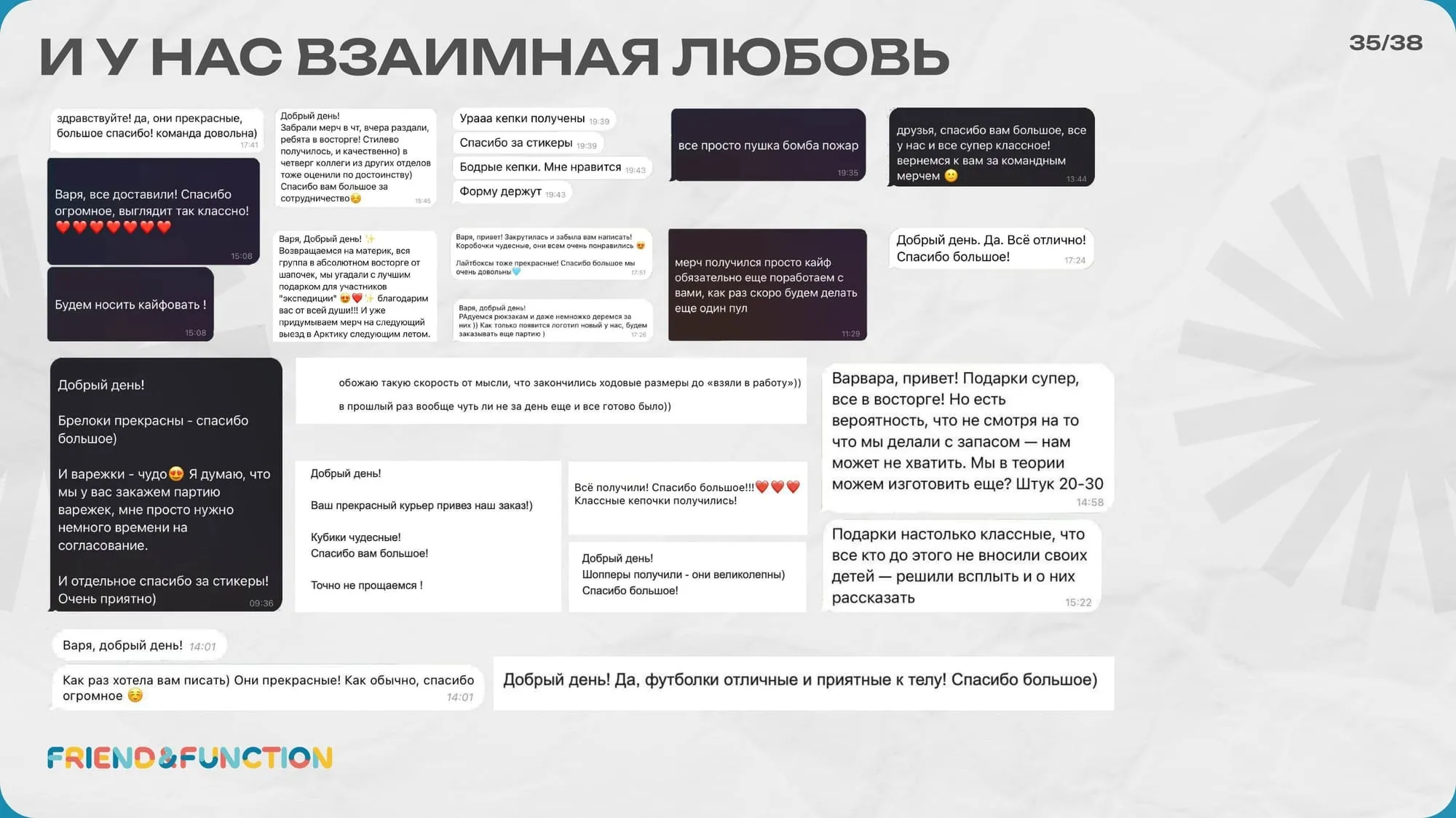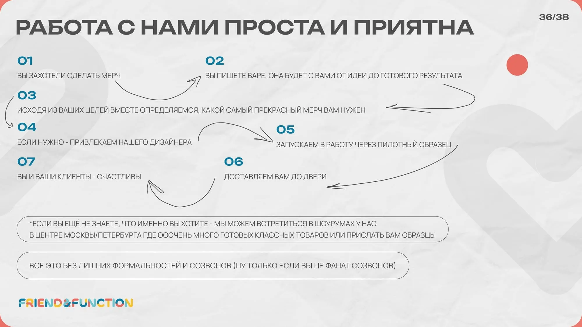 Если вам или кому-то в вашем окружении может быть интересно изготовление мерча на заказ - вот презентация с нашими возможностями. Если вы хотите заказать мерч для компании или сделать копоротивные подарки с нами - пишите на merch@friendfunction.ru