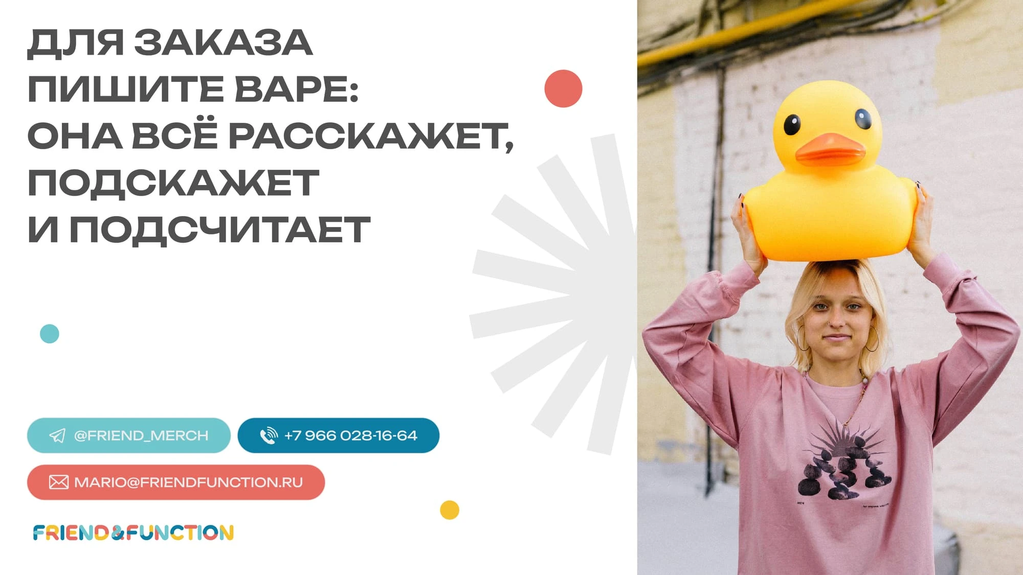 Если вы хотите заказать мерч для компании или сделать копоротивные подарки с нами - пишите на merch@friendfunction.ru